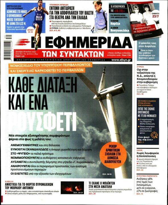 Τα πολιτικά πρωτοσέλιδα της ημέρας(18/07)
