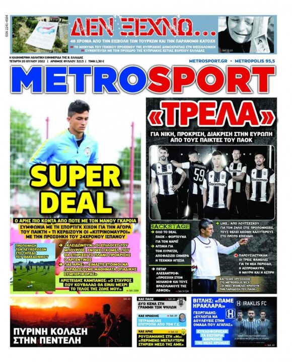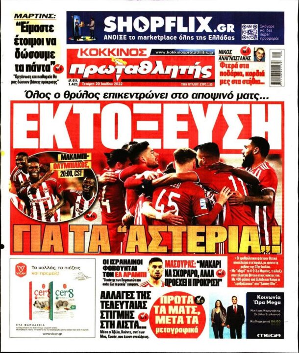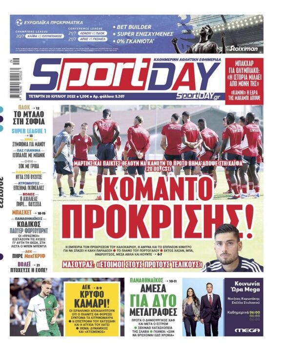 Τα αθλητικά πρωτοσέλιδα της ημέρας(20/07)
