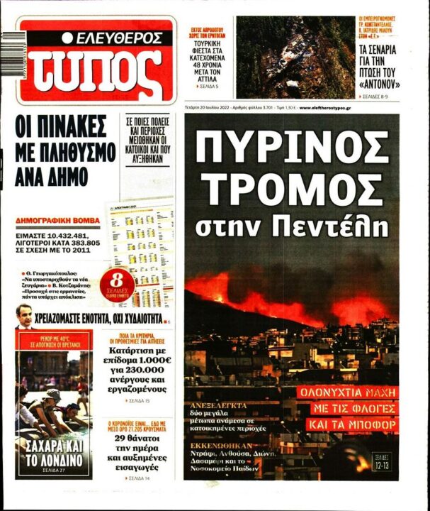 Τα πολιτικά πρωτοσέλιδα της ημέρας(20/07)