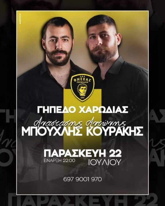 Θα έχουμε στην Χαρωδια με Μπούχλη και Κουράκη”, λέει η μαντινάδα του Θησέα για την αυριανή εκδήλωση.