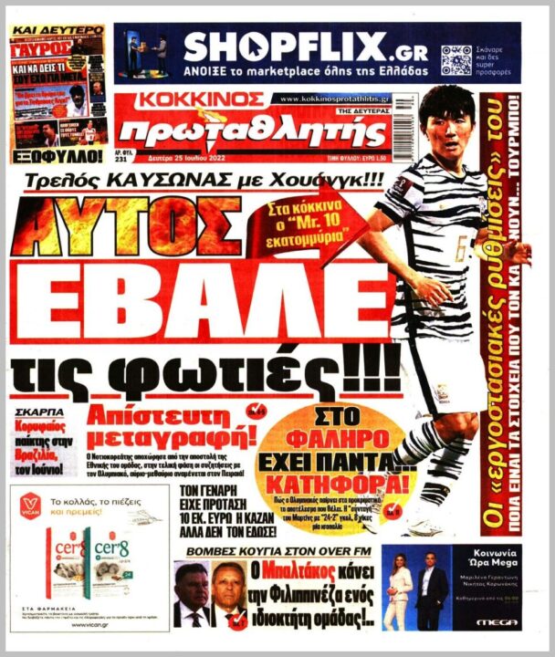 Τα αθλητικά πρωτοσέλιδα της Δευτέρας (25/7)
