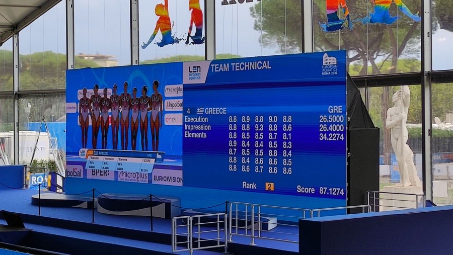 Την 4η θέση στον τελικό του Τεχνικού Ομαδικού στο Ευρωπαϊκό πρωτάθλημα Καλλιτεχνικής Κολύμβησης στη Ρώμη, κατέκτησε το απόγευμα της Πέμπτης (11/8), πρώτης ημέρας της διοργάνωσης, η Εθνική μας ομάδα.