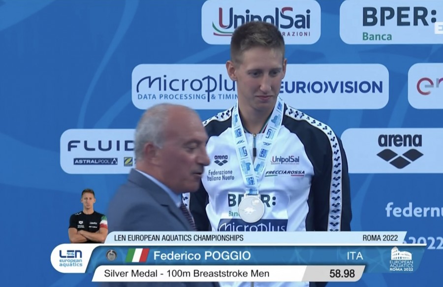 Την απονομή στους νικητές στα 100μ πρόσθιο Ανδρών έκανε ο Πρόεδρος της ΚΟΕ και Αντιπρόεδρος της LEN Κυριάκος Γιαννόπουλος