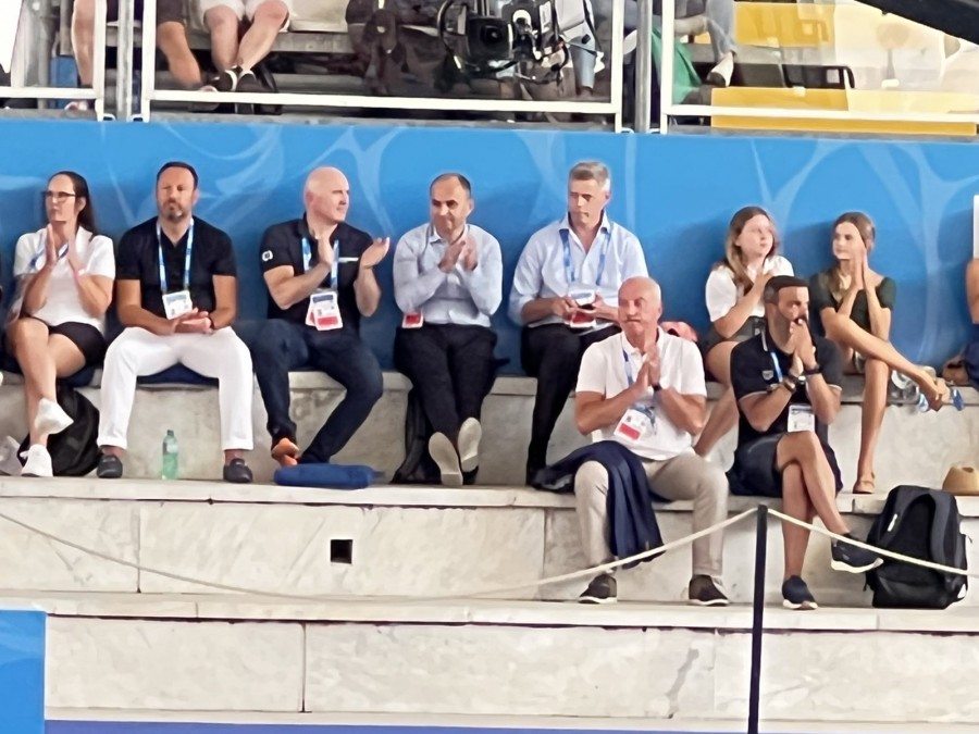 Τον αγώνα των κοριτσιών παρακολούθησε ο Πρόεδρος της Κολυμβητικής Ομοσπονδίας Ελλάδας και Αντιπρόεδρος της LEN Κυριάκος Γιαννόπουλος μαζί με τα μέλη του ΔΣ της ΚΟΕ Νίκο Ξυλούρη και Δέσποινα Καράμπελα (μέλος της Τεχνικής Επιτροπής Καλλιτεχνικής στη LEN), οι οποίοι αμέσως μετά συνεχάρησαν τα κορίτσια, την ομοσπονδιακή προπονήτρια Αναστασία Γκούτσεβα και τη συνεργάτιδά της Βιβή Λιθαδιώτη.