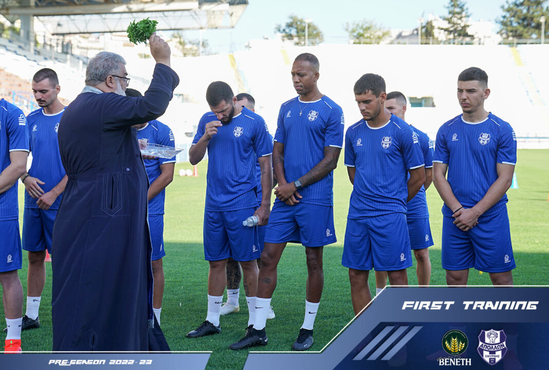 Πραγματοποιήθηκε σήμερα Τετάρτη, 17 Αυγούστου 2022, η πρώτη προπόνηση των ποδοσφαιριστών του Απόλλωνα Σμύρνης εν όψει της νέας αγωνιστικής περιόδου. Ο τεχνικός του Απόλλωνα, Γιάννης Τάτσης και οι συνεργάτες του υποδέχθηκαν παλιούς και νέους παίκτες στο γήπεδο «Γεώργιος Καμάρας».