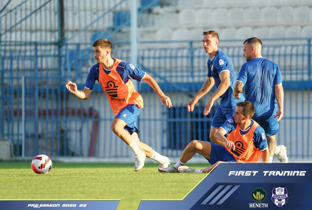 Την πρώτη του προπόνηση ενόψει της νέας αγωνιστικής περιόδου πραγματοποίησε ο Απόλλων Σμύρνης, που θα έχει στόχο να πρωταγωνιστήσει, προκειμένου nα επιστρέψει στην Super League 1.