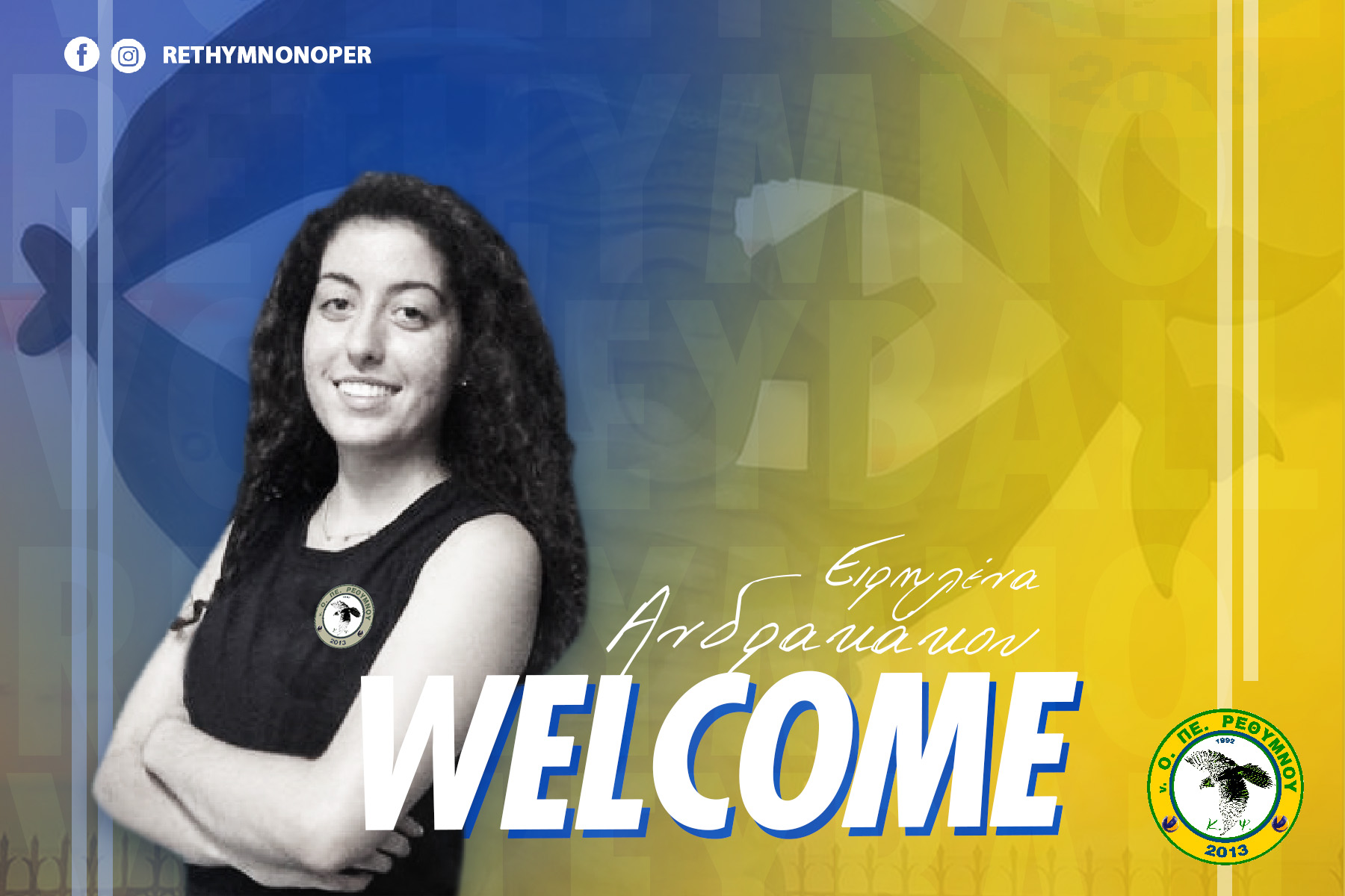 “Ο νέος Ο.ΠΕ.Ρεθύμνου καλωσορίζει στην οικογένεια του την αθλήτρια Ειρηλένα Ανδρακάκου.
