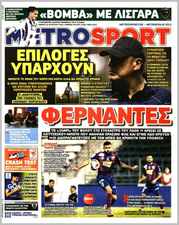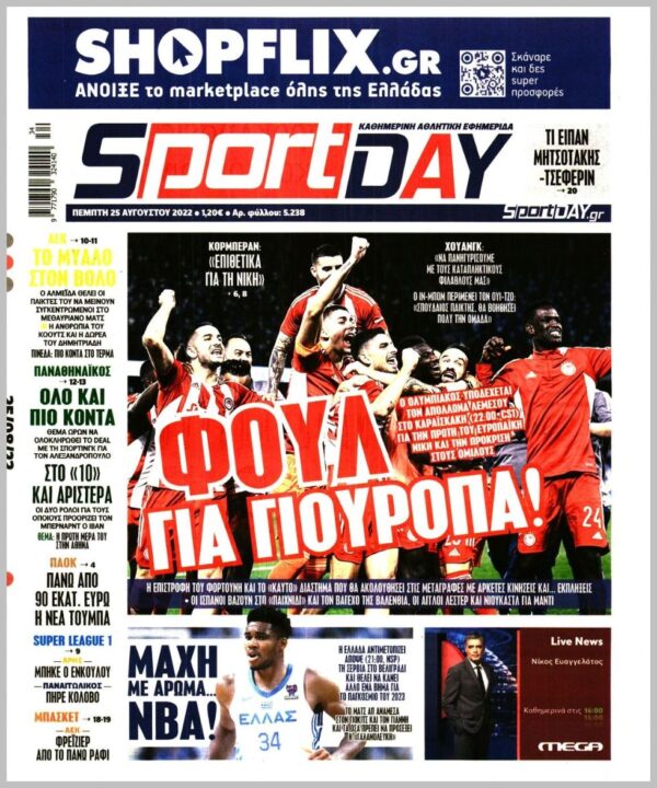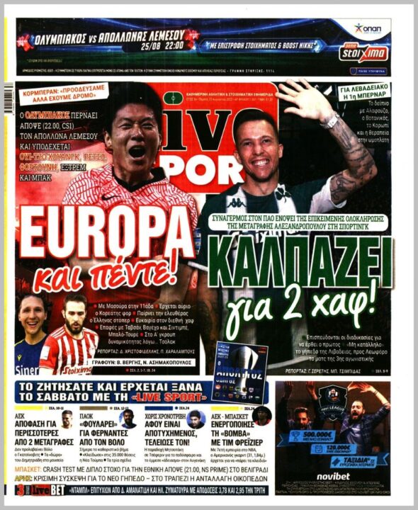 Τα αθλητικά πρωτοσέλιδα της Πέμπτης (25/8)