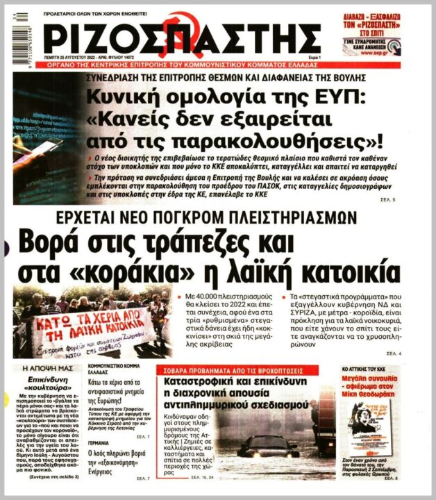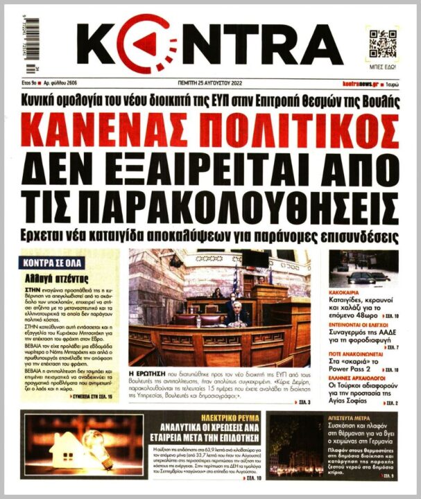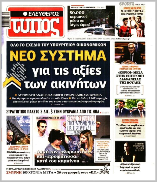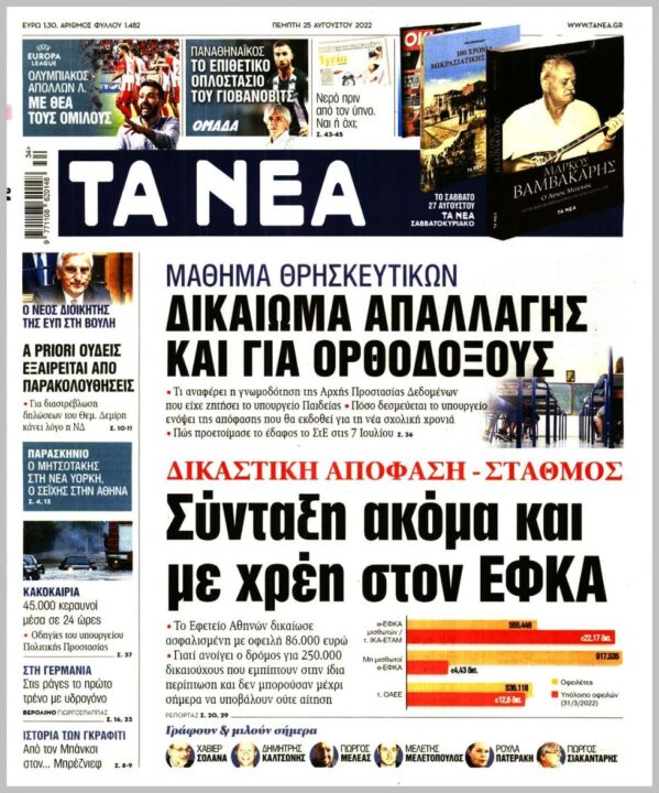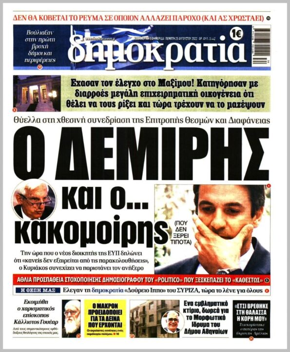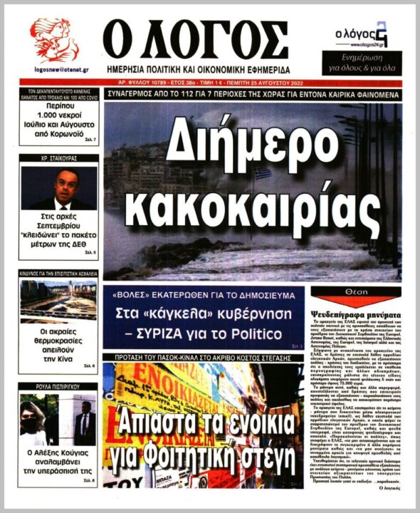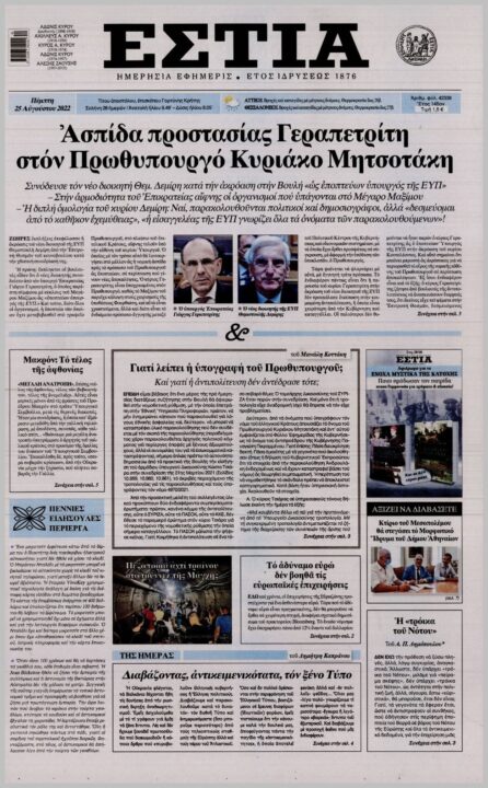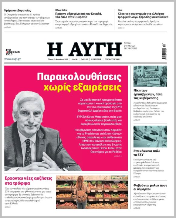 Τα πολιτικά πρωτοσέλιδα της Πέμπτης (25/8)