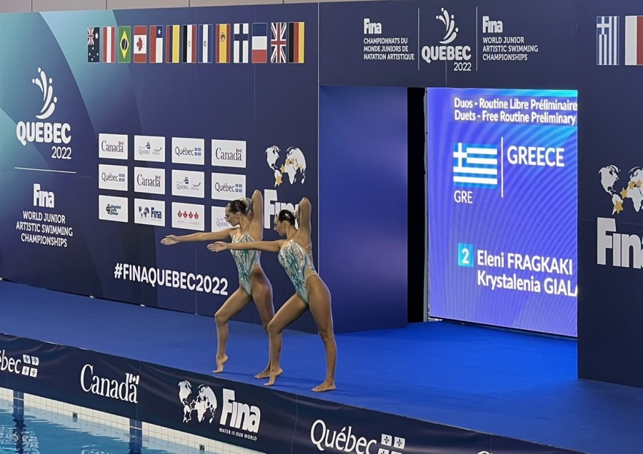 Την 5η θέση στον τελικό του ελεύθερου προγράμματος στο ντουέτο κατέκτησαν οι Έλενα Φραγκάκη και Κρυσταλένια Γιαλαμά στο παγκόσμιο πρωτάθλημα καλλιτεχνικής κολύμβησης νεανίδων στο Κεμπέκ.