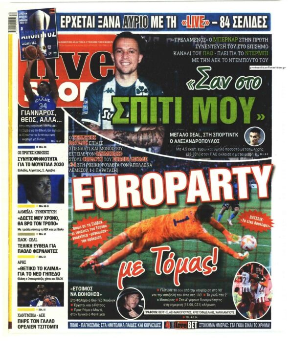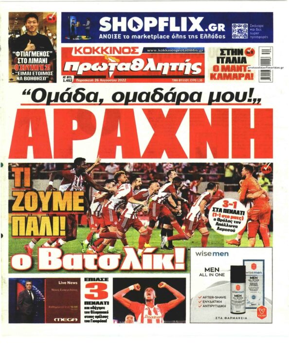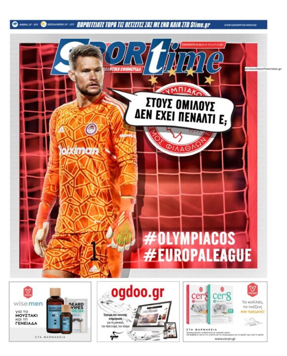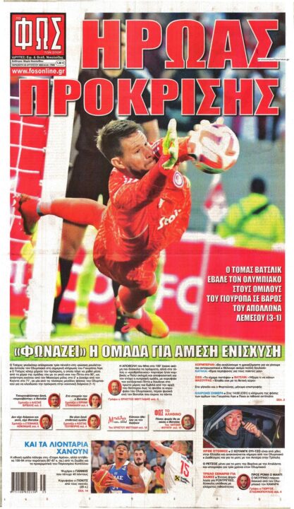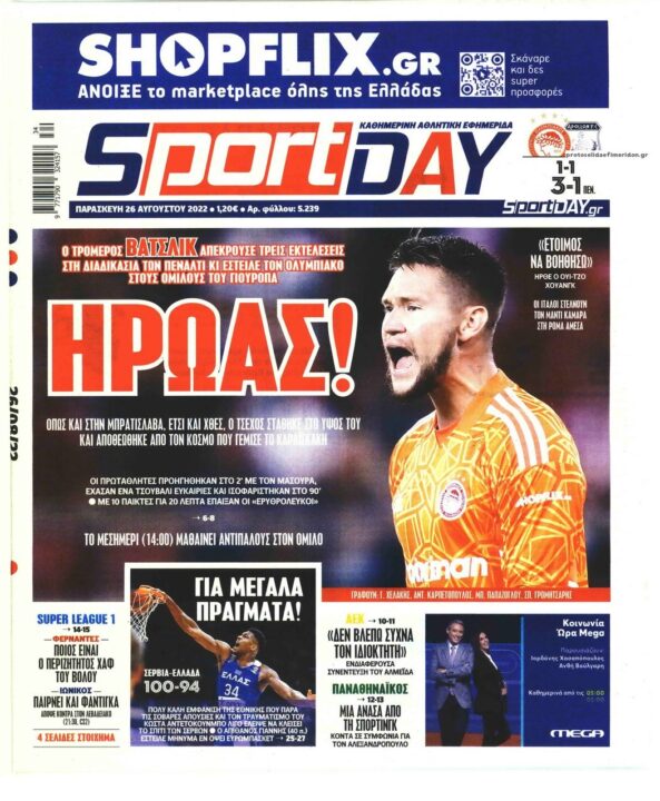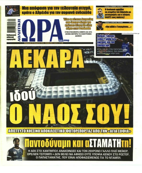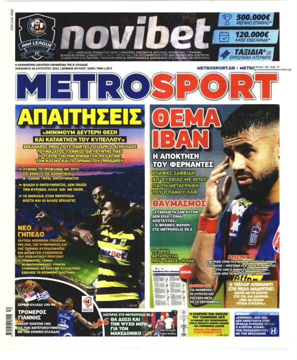 Tα αθλητικά πρωτοσέλιδα της Παρασκευής 26 Αυγούστου