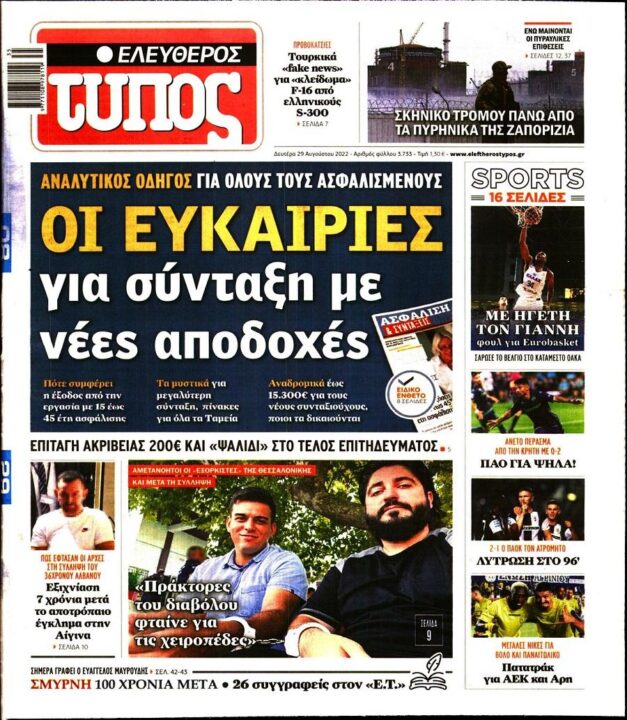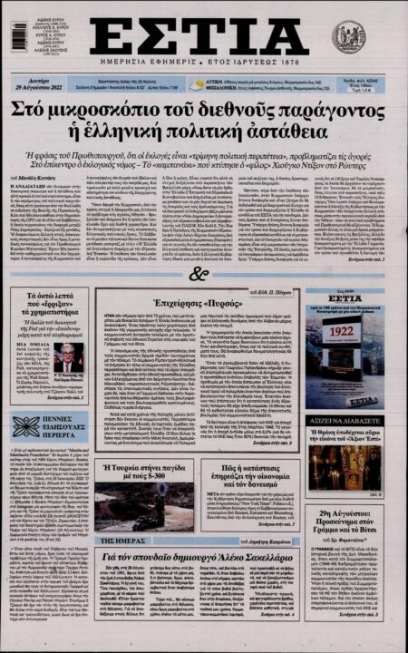 Τα πολιτικά πρωτοσέλιδα της ημέρας(29/08)