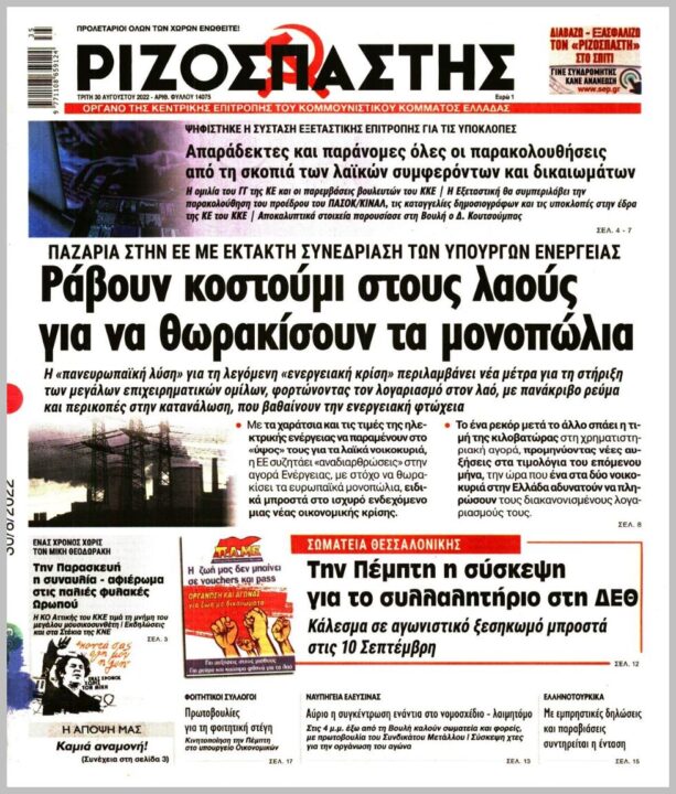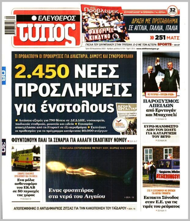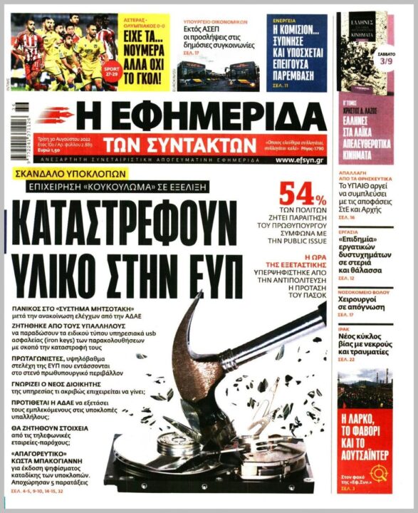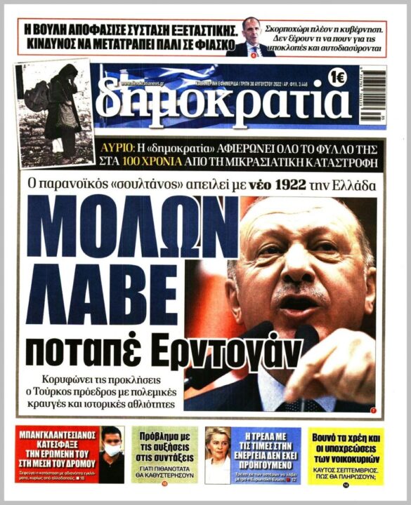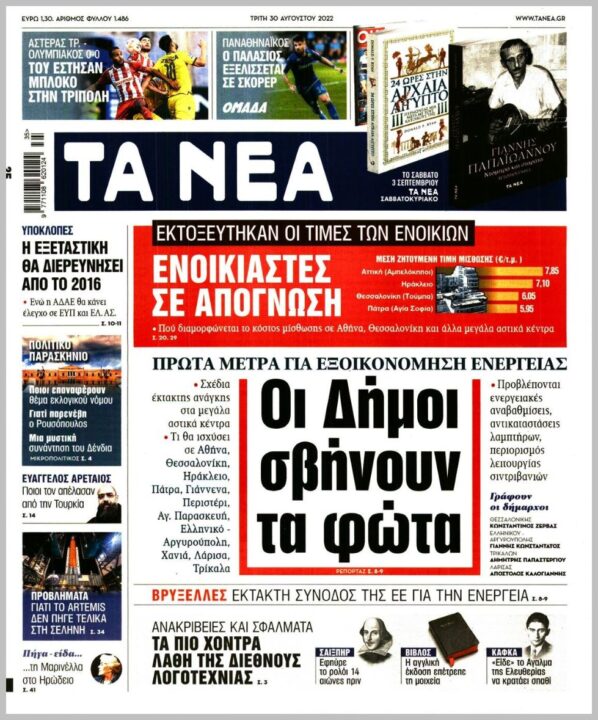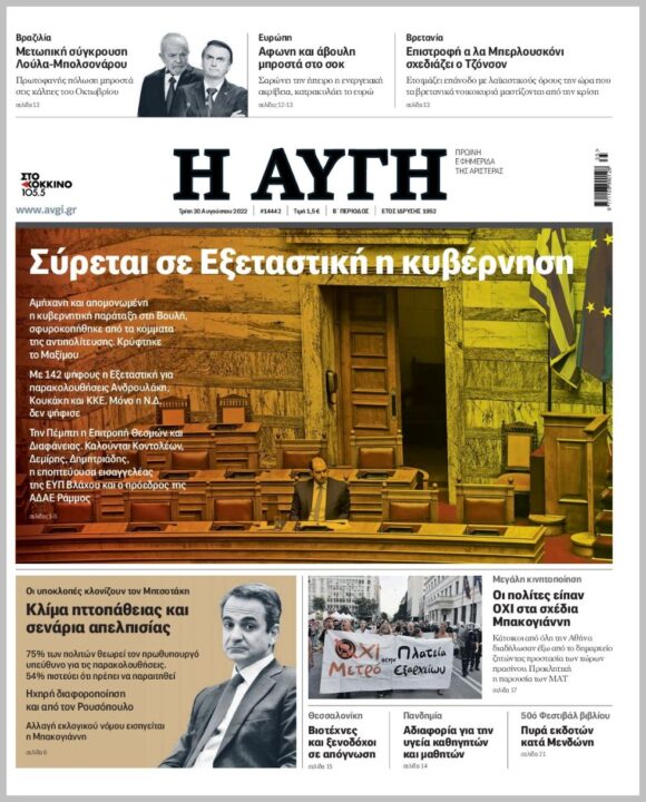 Τα πολιτικά πρωτοσέλιδα της Τρίτης (30/8)