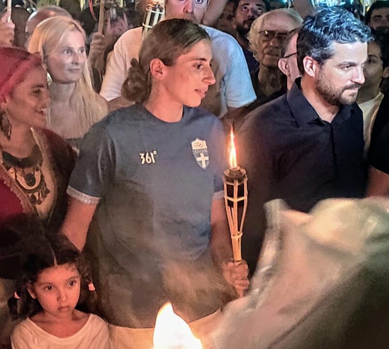 Εκεί μάλιστα, η Χανιώτισσα κολυμβήτρια έδειξε ότι το “έχει” και έξω…από τις πισίνες, αφού έσυρε τον χορό που είχε στηθεί στον προαύλιο χώρο της Μητρόπολης Χανίων.