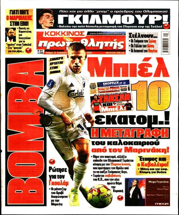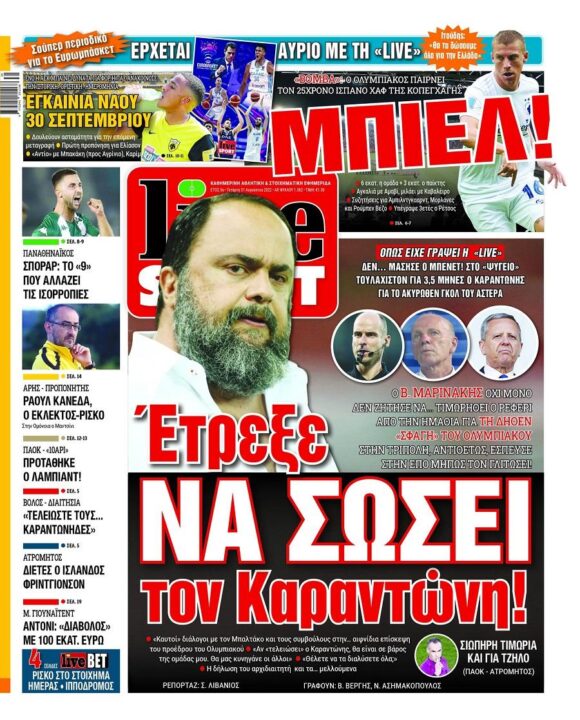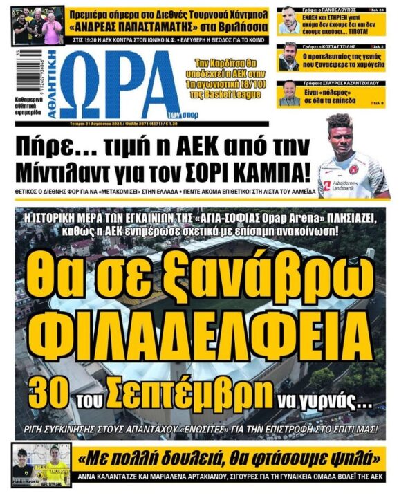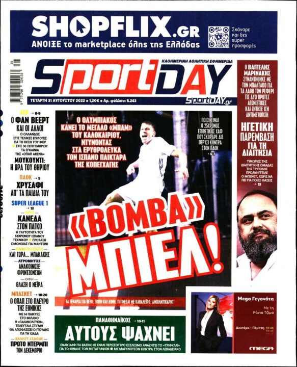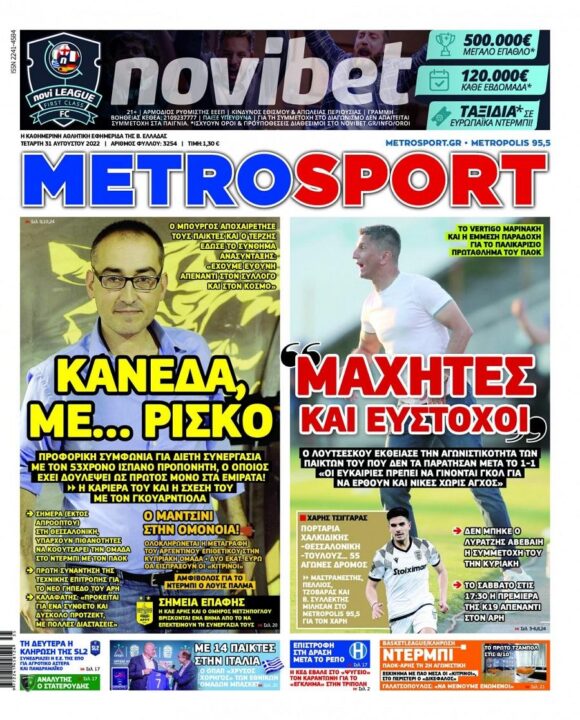 Τα αθλητικά πρωτοσέλιδα της ημέρας(31/08)