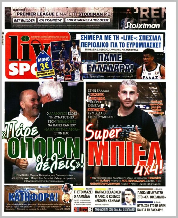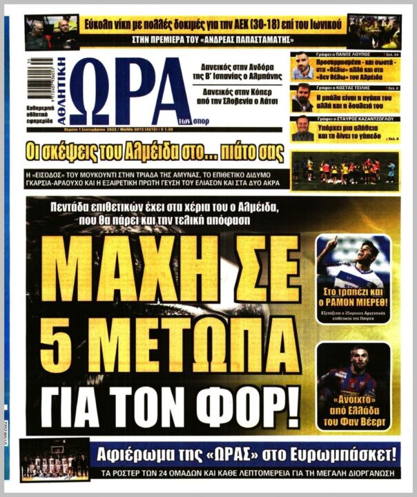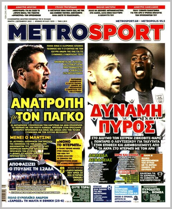 Τα αθλητικά πρωτοσέλιδα της Πέμπτης (1/9)