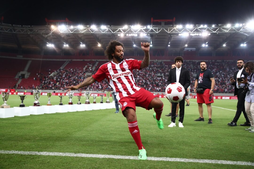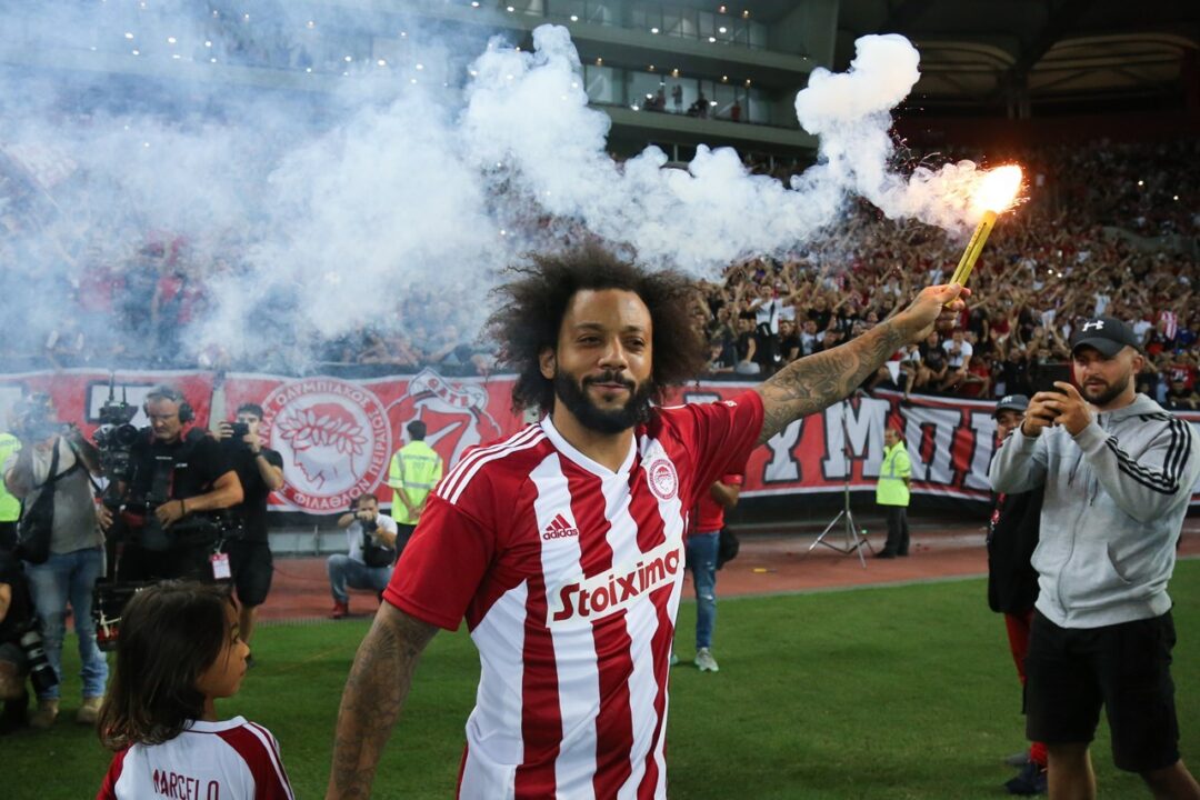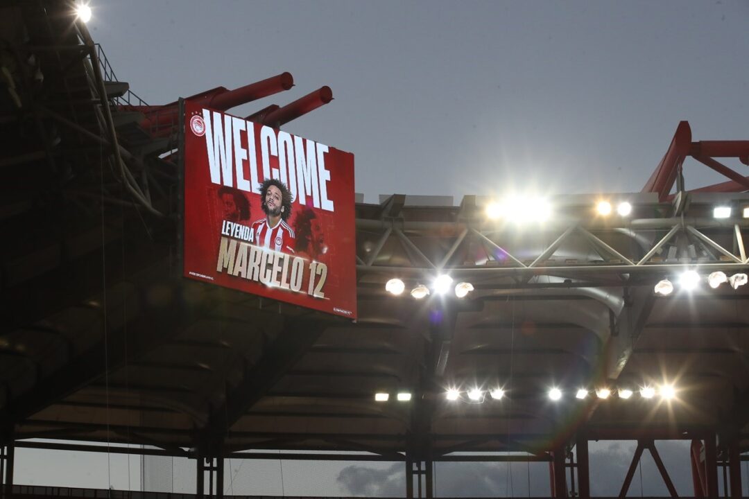 Λίγο μετά τις 20:45 το βράδυ της Δευτέρας (5/9) ο Μαρσέλο πάτησε το γρασίδι του Γ. Καραϊσκάκης και αποθεώθηκε από 20.000 περίπου κόσμου που είχαν δημιουργήσει φανταστική ατμόσφαιρα για να υποδεχθούν το μεγαλύτερο ποδοσφαιρικό αστέρι που έχει πατήσει το πόδι του στα ελληνικά γήπεδα τις τελευταίες δύο δεκαετίες, τον Βραζιλιάνο πρώην αρχηγό της Ρεάλ Μαδρίτης, Μαρσέλο.