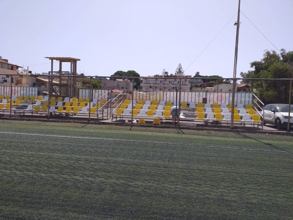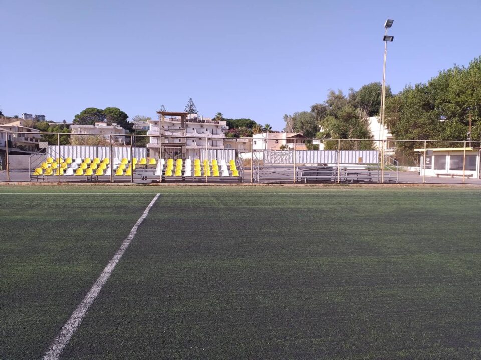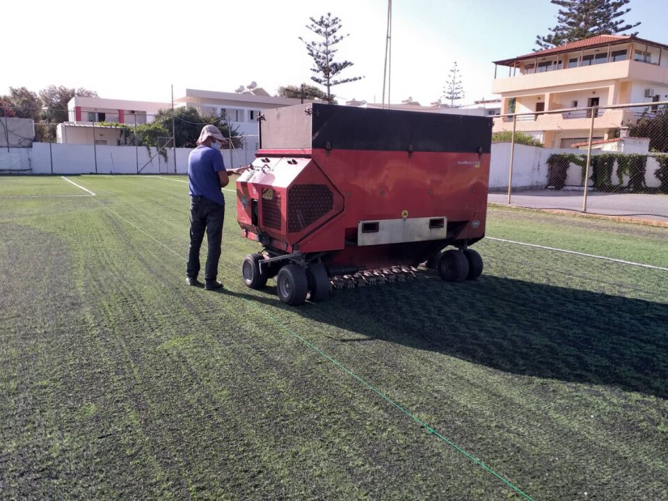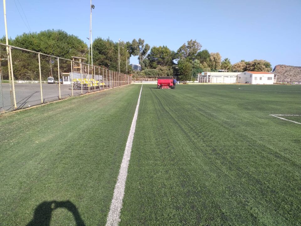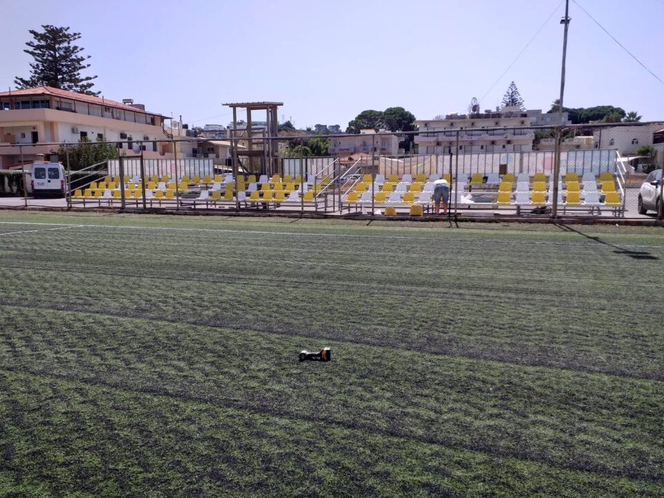 Ολοκληρώθηκαν οι εργασίες στο δημοτικό γήπεδο Αγίας Μαρίνας από το δήμο Χανίων εν όψη της έναρξης της νέας ποδοσφαιρικής σεζόν. Συγκεκριμένα τοποθετήθηκε νέο καουτσούκ και χτενίστηκε ο συνθετικός τάπητας με ειδικό μηχάνημα. Επίσης τοποθετήθηκαν και καθίσματα στη νέα εξέδρα πενήντα τριών θέσεων που αφιχθεί τον περασμένο Ιούνιο. Όλα έτοιμα λοιπόν στο γήπεδο μας που αύριο Κυριακή 11/09 στις 17:00 θα υποδεχτεί την ομάδα μας με αντίπαλο την Ιωνία για τον νοκ άουτ αγώνα κυπέλου Χανίων.