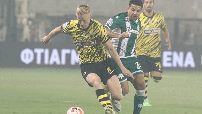 Ο Παναθηναϊκός συνεχίζει να είναι η μοναδική ομάδα που έχει κάνει το απόλυτο μετά από πέντε αγωνιστικές και βρίσκεται μόνος πρώτος στην κορυφή της βαθμολογίας. Οι πράσινοι πήραν το ντέρμπι και έκαναν το 4Χ4. H AEK ήταν εκείνη που προηγήθηκε με το γκολ του Πινέδα που σκόραρε για δεύτερη συνεχόμενη αγωνιστική. Στο 42′ ο Αϊτόρ ισοφάρισε για τον Παναθηναϊκό με εκτέλεση πέναλτι και στις καθυστερήσεις του ημιχρόνου ο Σπόραρ με το δεύτερο πέναλτι για τον Παναθηναϊκό διαμόρφωσε το τελικό 2-1 με τους γηπεδούχους να έχουν δύο δοκάρια στο δεύτερο 45λεπτο με τους Αϊτόρ και Παλάσιος.