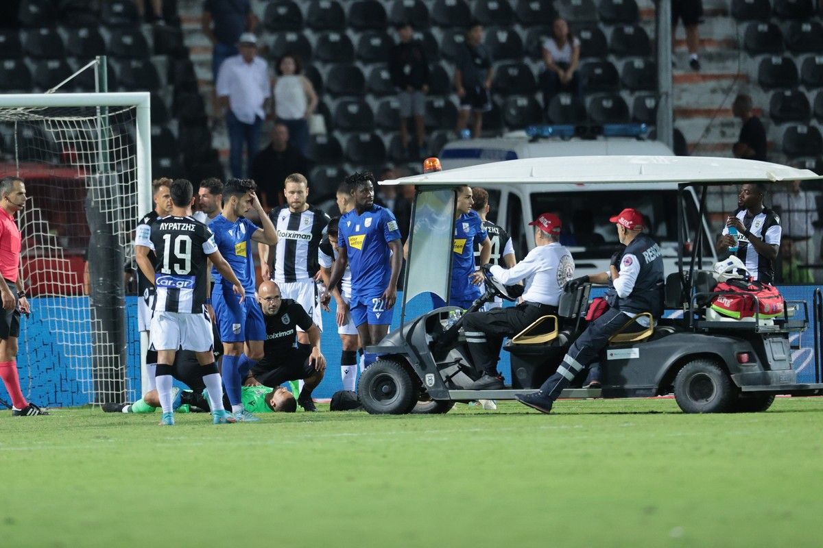 Ο τερματοφύλακας του ΠΑΟΚ, συγκρούστηκε με τον Μποάκι στο τέλος του αγώνα με τη Λαμία και βγήκε με φορείο από τον αγωνιστικό χώρο