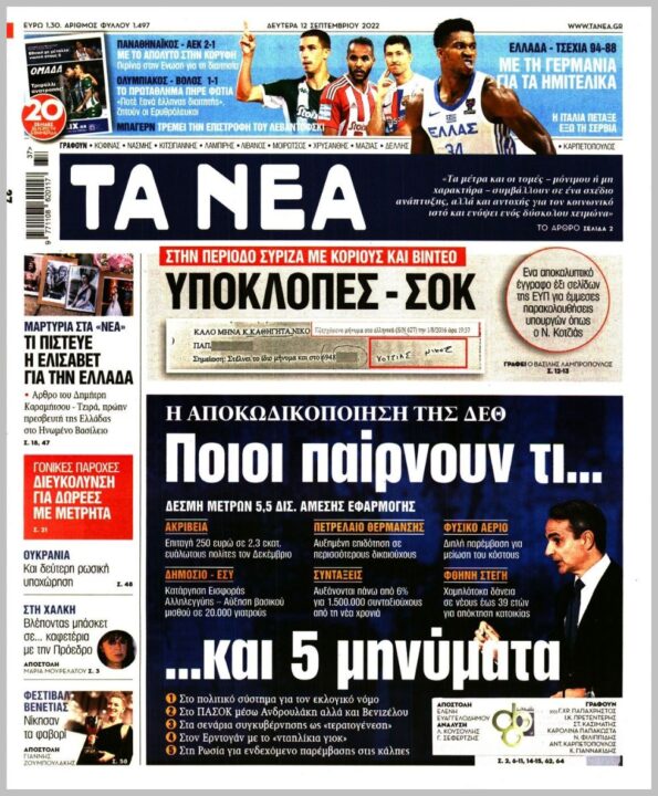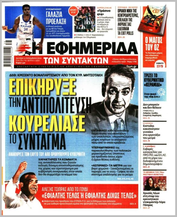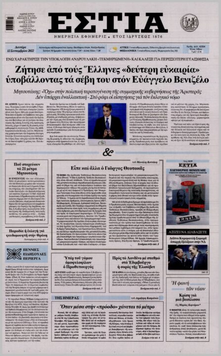 Τα πολιτικά πρωτοσέλιδα της Δευτέρας (12/09)