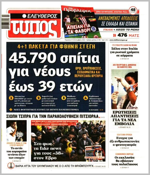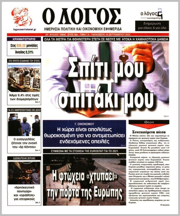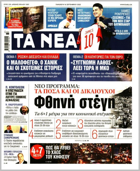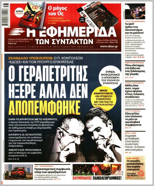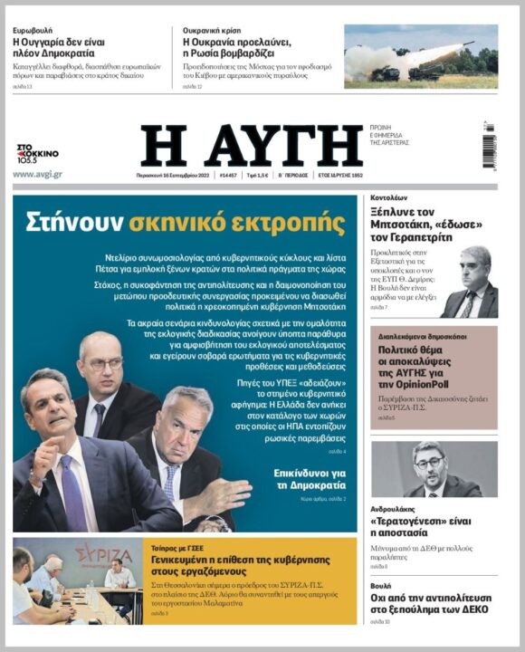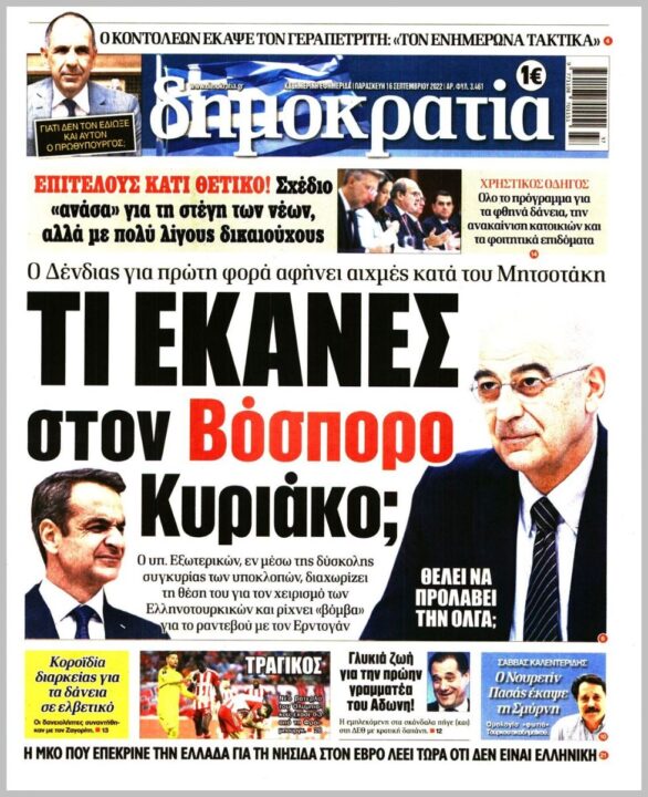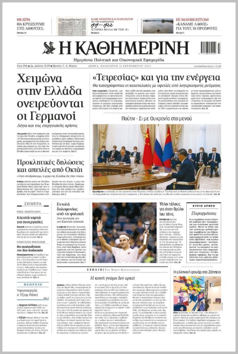 Τα πολιτικά πρωτοσέλιδα της Παρασκευής (16/09)