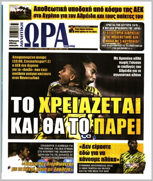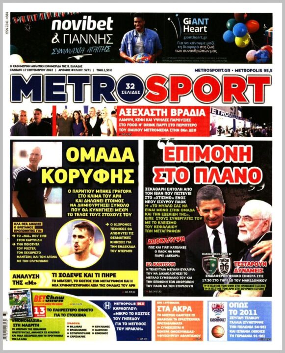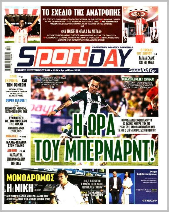 Τα αθλητικά πρωτοσέλιδα του Σαββάτου (17/09)