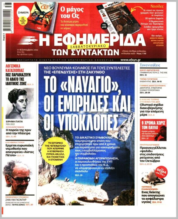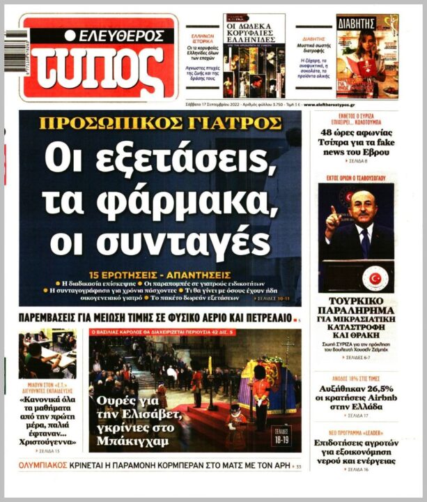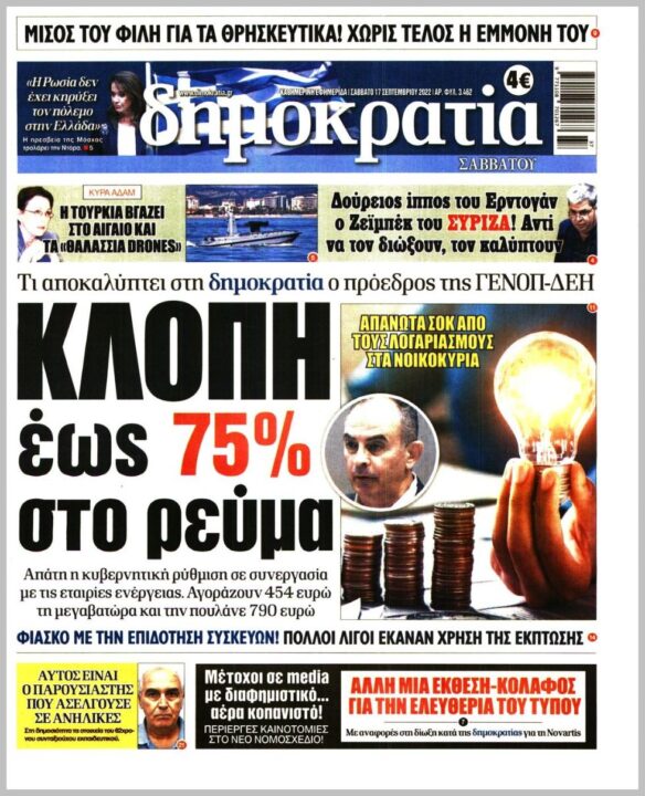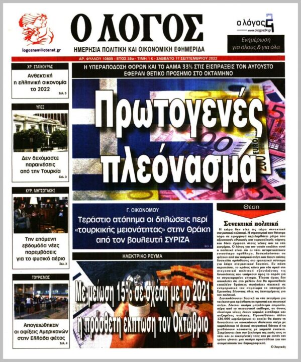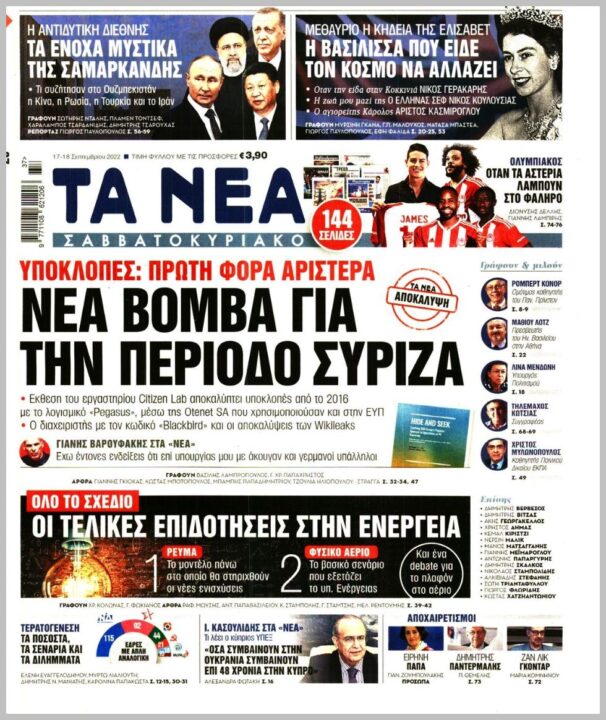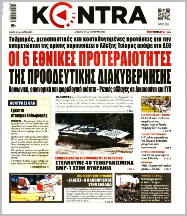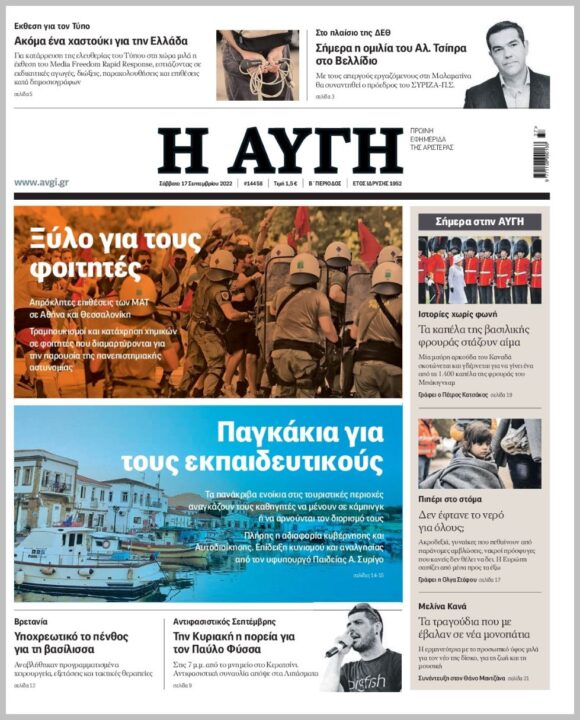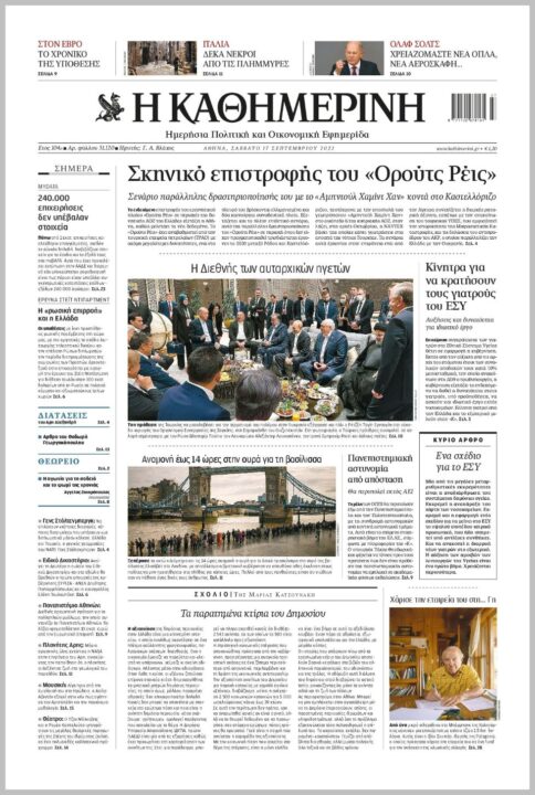 Τα πολιτικά πρωτοσέλιδα του Σαββάτου (17/09)