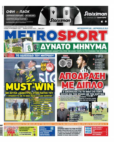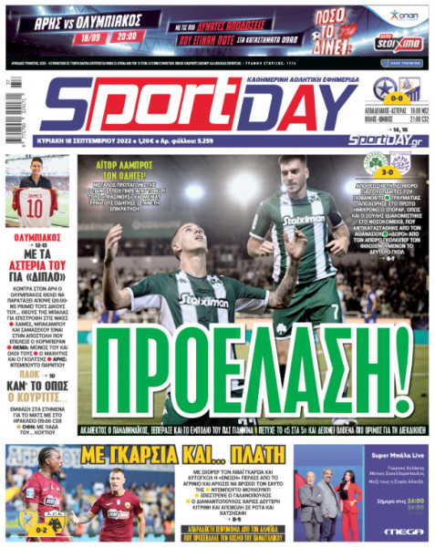 Τα αθλητικά πρωτοσέλιδα της Κυριακής 18 Σεπτεμβρίου