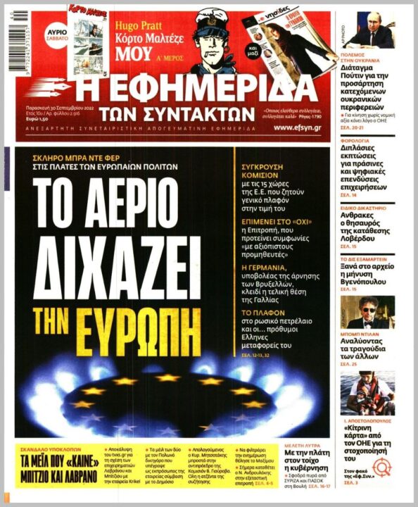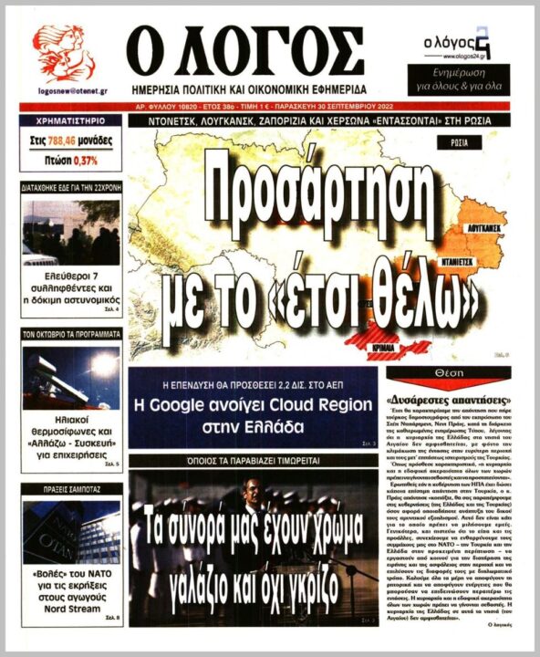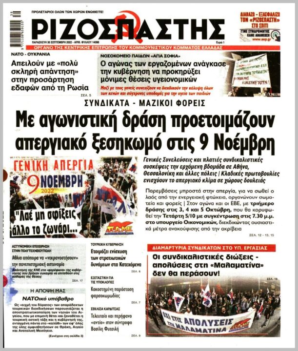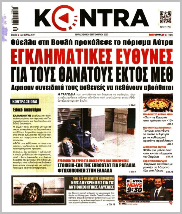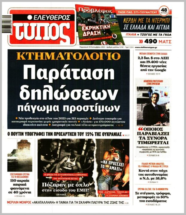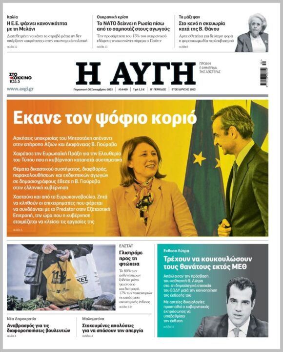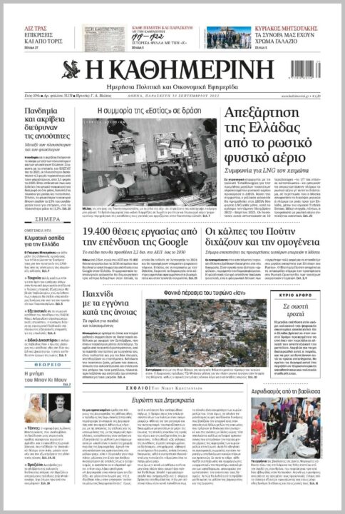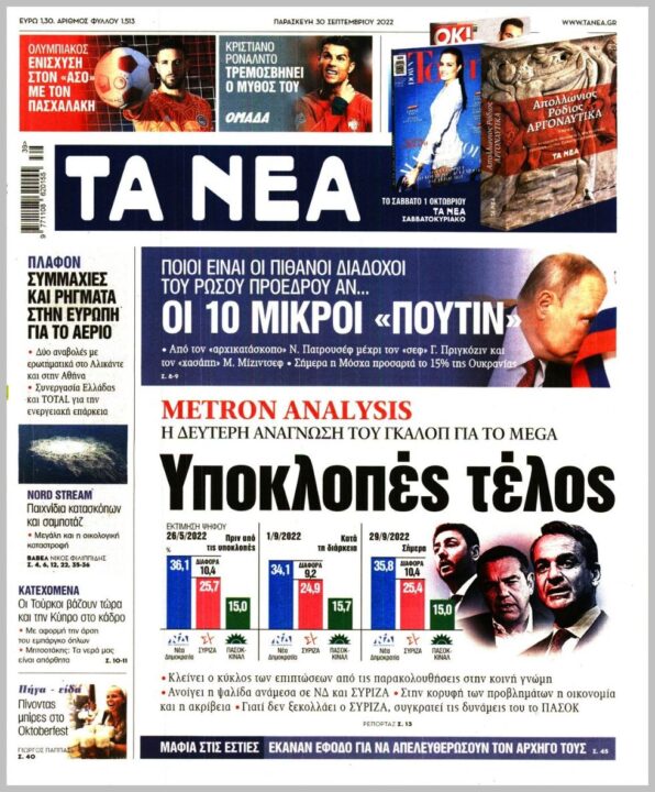 Τα πρωτοσέλιδα των πολιτικών εφημερίδων της Παρασκευής (30/9)