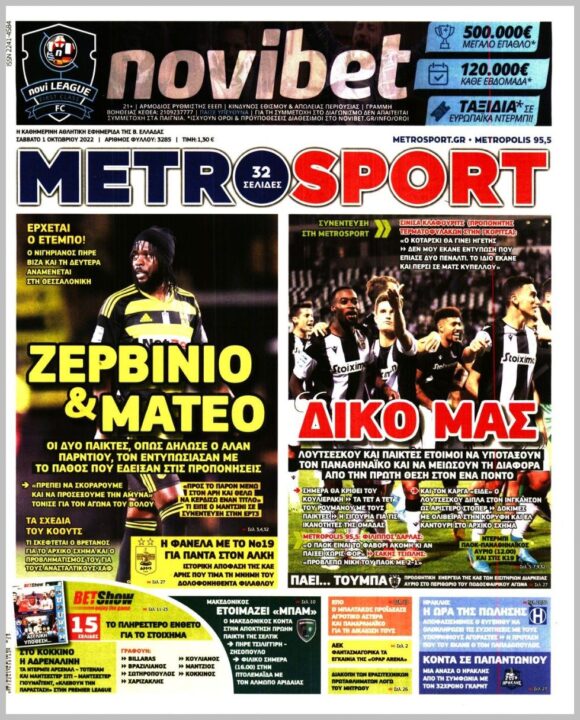 Τα αθλητικά πρωτοσέλιδα του Σαββάτου (1/10)