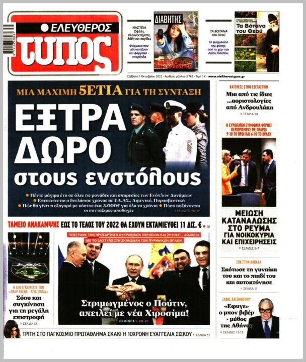 Τα πολιτικά πρωτοσέλιδα του Σαββάτου (1/10)