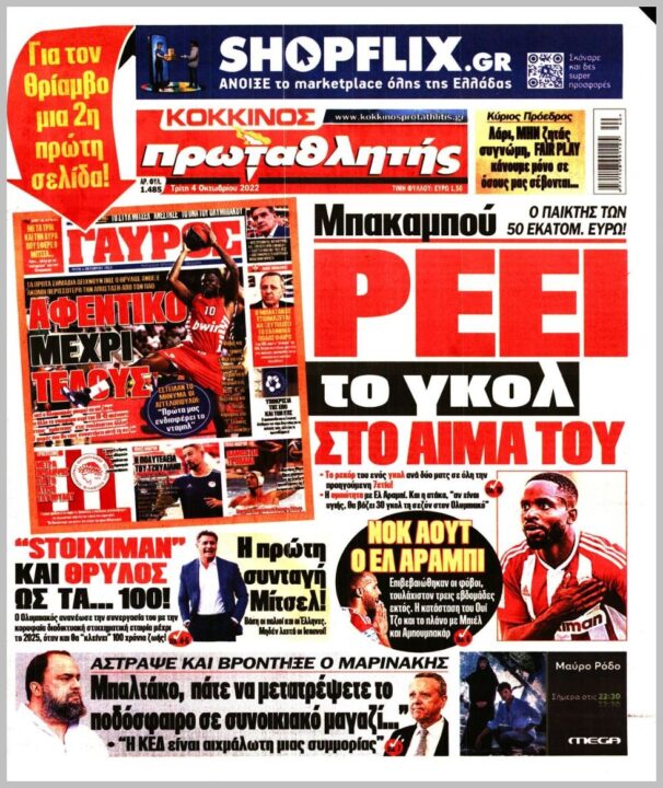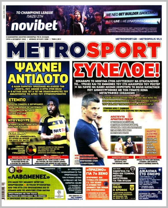 Τα αθλητικά πρωτοσέλιδα της Τρίτης (4/10)