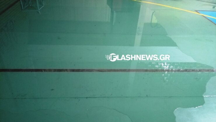 Με την πρώτη βροχή γέμισε νερά το κλειστό γυμναστήριο στο ΕΠΑΛ Ακρωτηρίου | pics