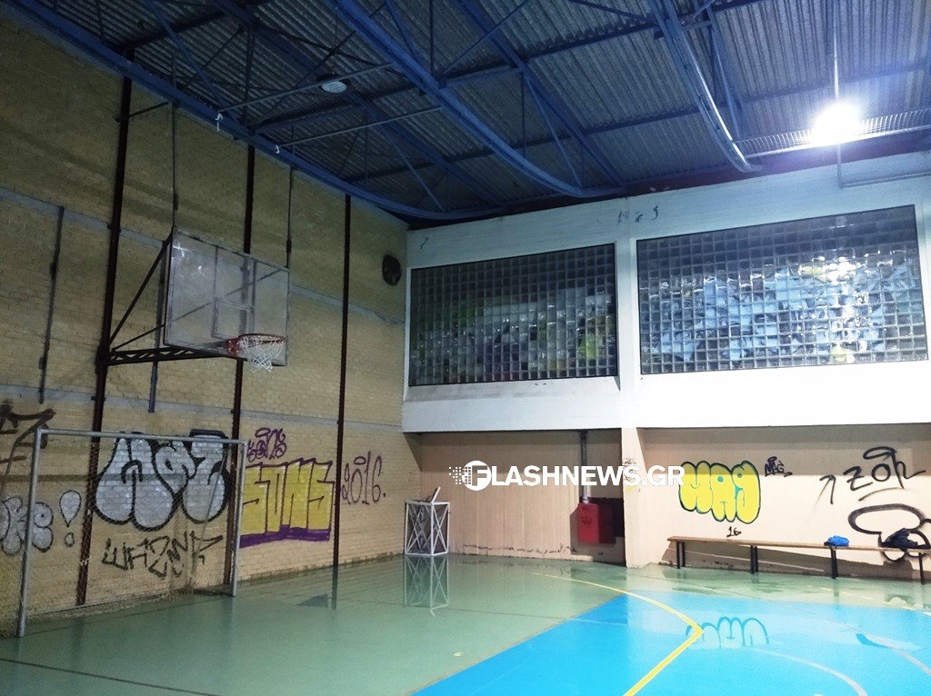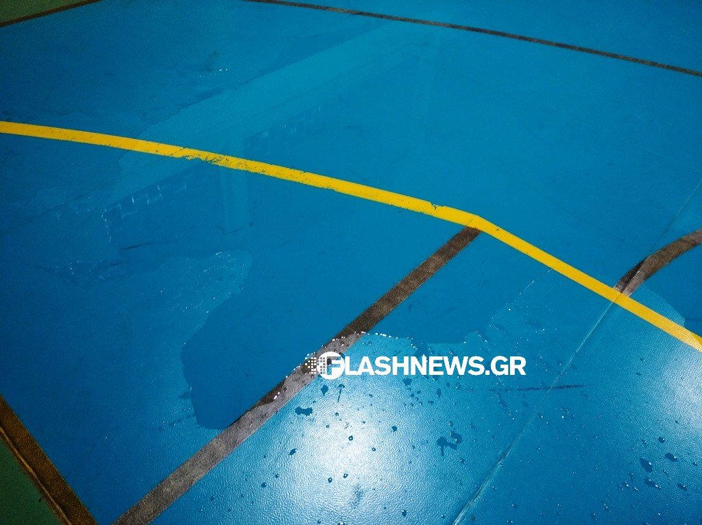 Με την πρώτη βροχή γέμισε νερά το κλειστό γυμναστήριο στο ΕΠΑΛ Ακρωτηρίου | pics