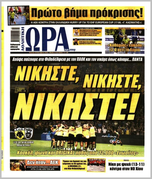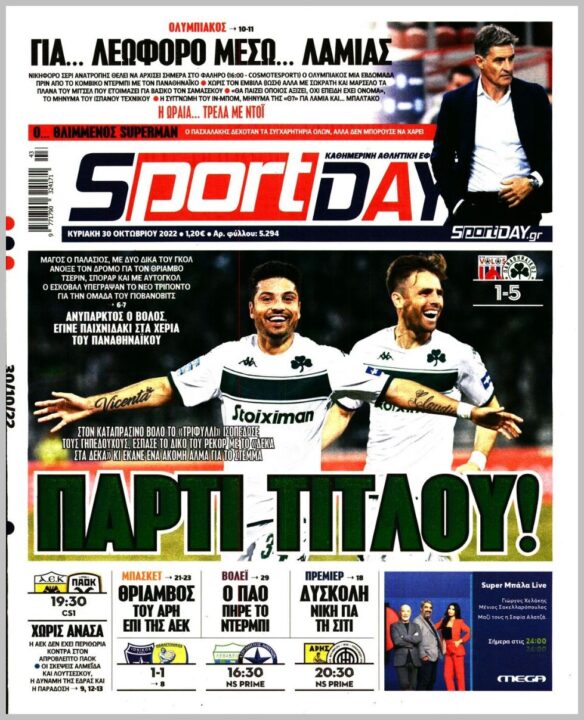 Γενικά Τα αθλητικά πρωτοσέλιδα της Κυριακής (30/10) Published Πριν 3 έτη on 30 Οκτωβρίου 2022 By Xristos Διαβάστε όσα γράφουν τα πρωτοσέλιδα των αθλητικών εφημερίδων Σχετικά θέματα:ΑΘΛΗΤΙΚΑ ΠΡΩΤΟΣΕΛΙΔΑ Δείτε Επίσης LiveΠριν 2 εβδομάδες Live: Ηρακλής Νεροκούρου – Άμιλλα 0-0 | Τελικό LiveΠριν 5 ημέρες Live: Ο αγώνας Τάλως – Θησέας LiveΠριν 3 εβδομάδες Live: Ο αγώνας Ήφαιστος – Παγχανιακός/ΑΟΔΑ LiveΠριν 2 εβδομάδες Live: Οι αγώνες σε Γ’ Εθνική, Α’ και Β’ ΕΠΣΧ LiveΠριν 1 ημέρα Live: Ο αγώνες Αστέρας Χαλέπας – Ποσειδώνας LiveΠριν 4 ημέρες Live: Οι αγώνες της Β’ ΕΠΣΧ