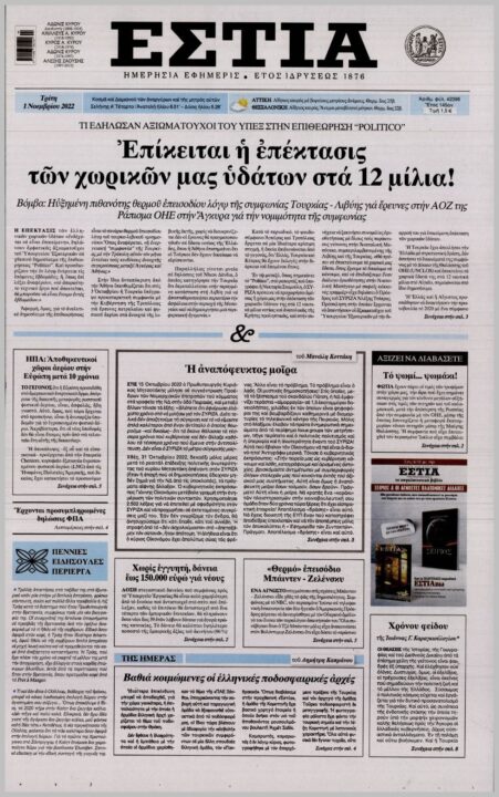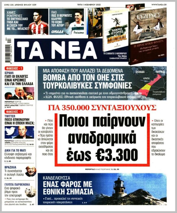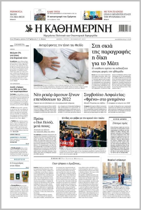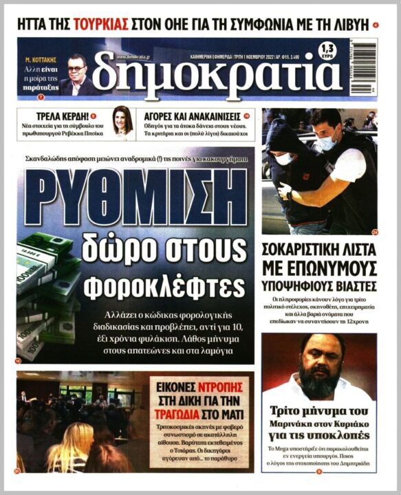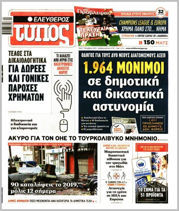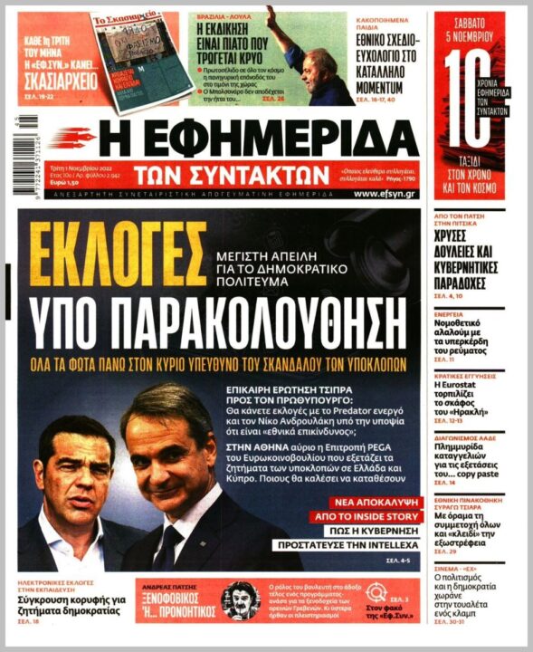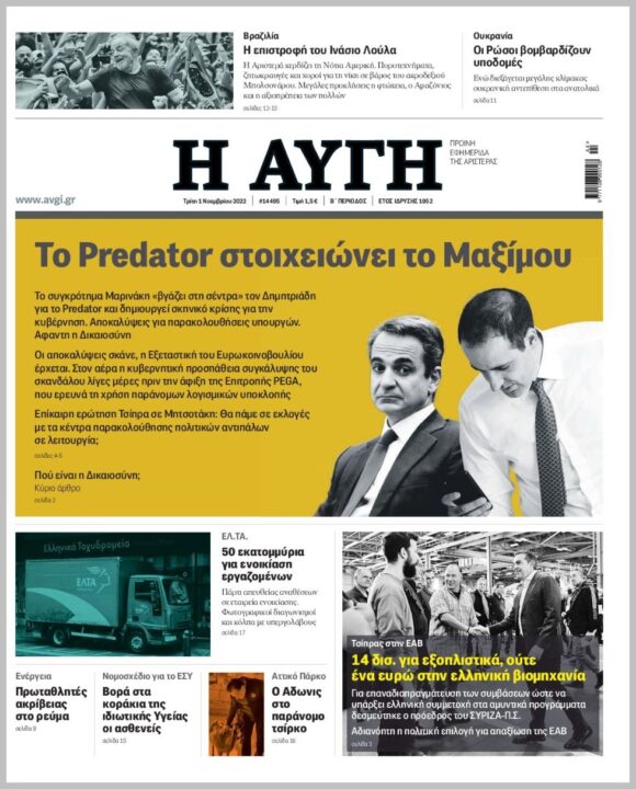 Τα πρωτοσέλιδα των πολιτικών εφημερίδων της Τρίτης (1/11)