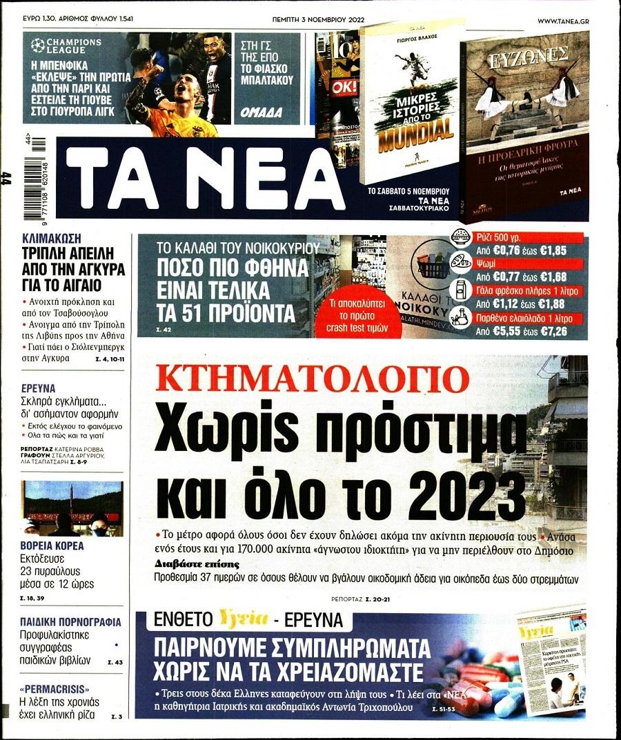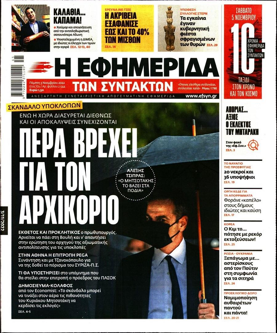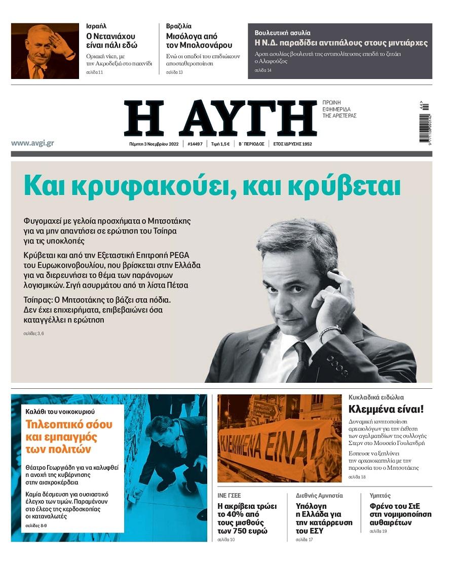 Τα πολιτικά πρωτοσέλιδα της ημέρας(03/11)