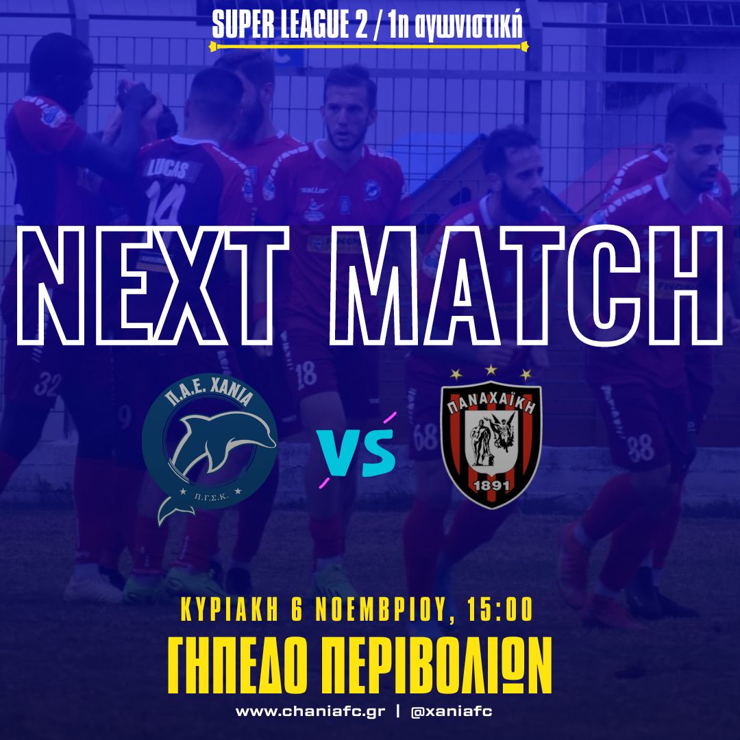 Τα Χανιά υποδέχονται την Παναχαϊκή την Κυριακή 6 Νοεμβρίου, στις 15:00 στα Περιβόλια, με την ομάδα των Χανίων να ενημερώνει ότι η διάθεση εισιτηρίων θα ξεκινήσει δύο ώρες πριν την έναρξη της αναμέτρησης.