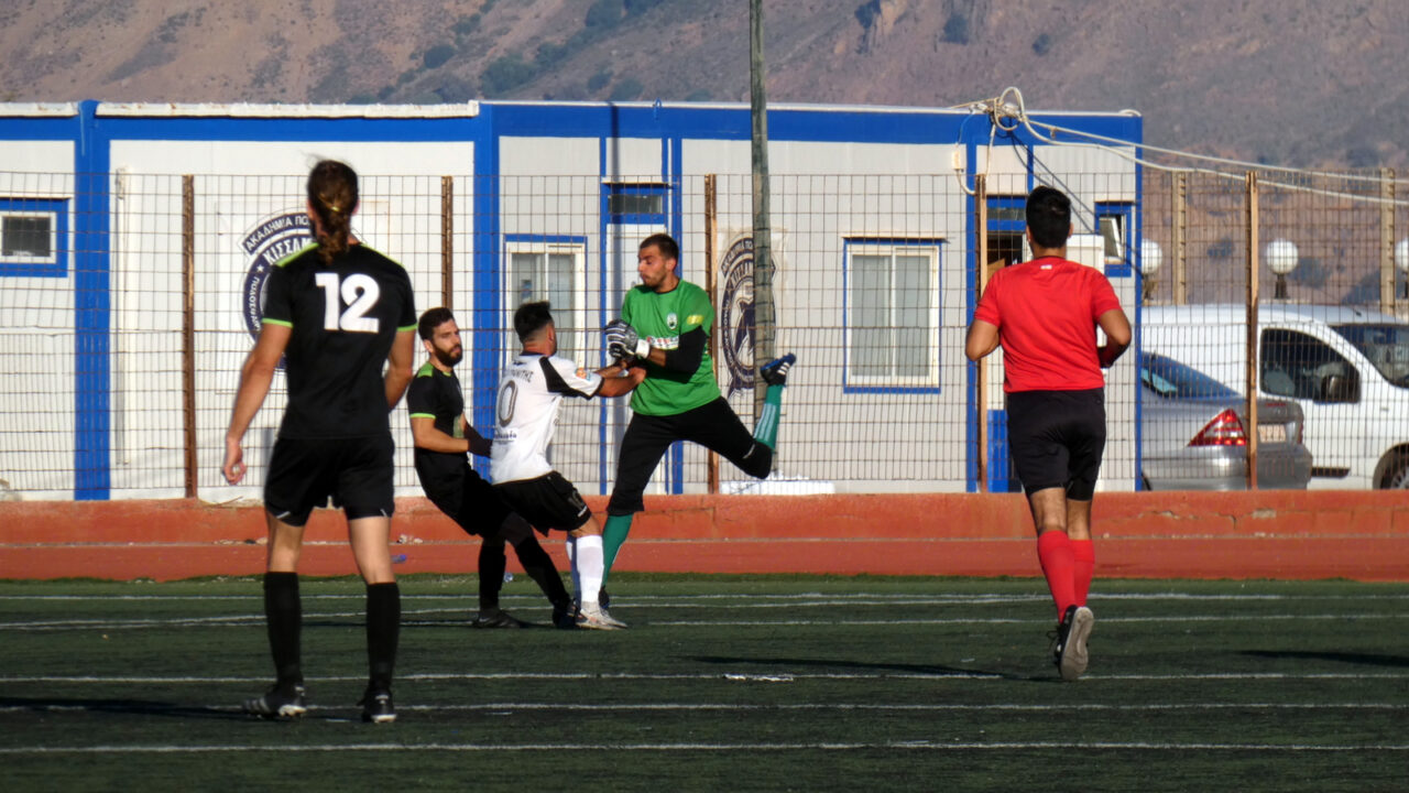 Ο τερματοφύλακας της Θύελλας, Τσαβαρής, προσπάθησε να κάνει ότι καλύτερο μπορούσε απέναντι σε ένα από τα φαβορί του φετινού πρωταθλήματος.