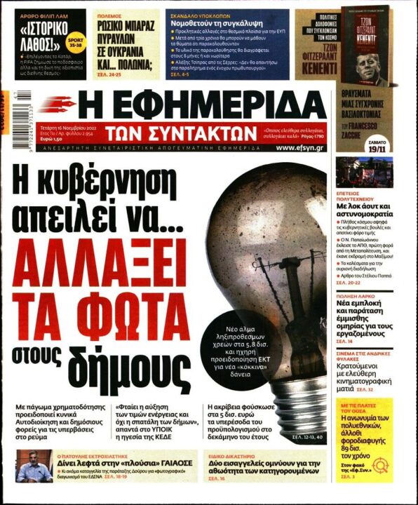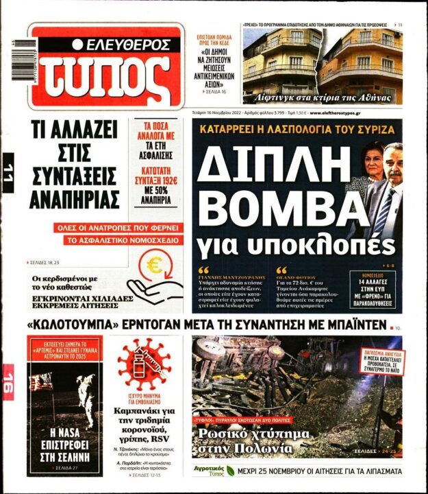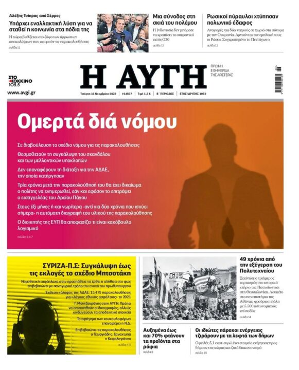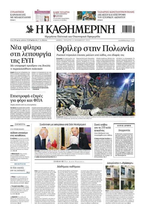 Τα πολιτικά πρωτοσέλιδα της ημέρας(16/11)