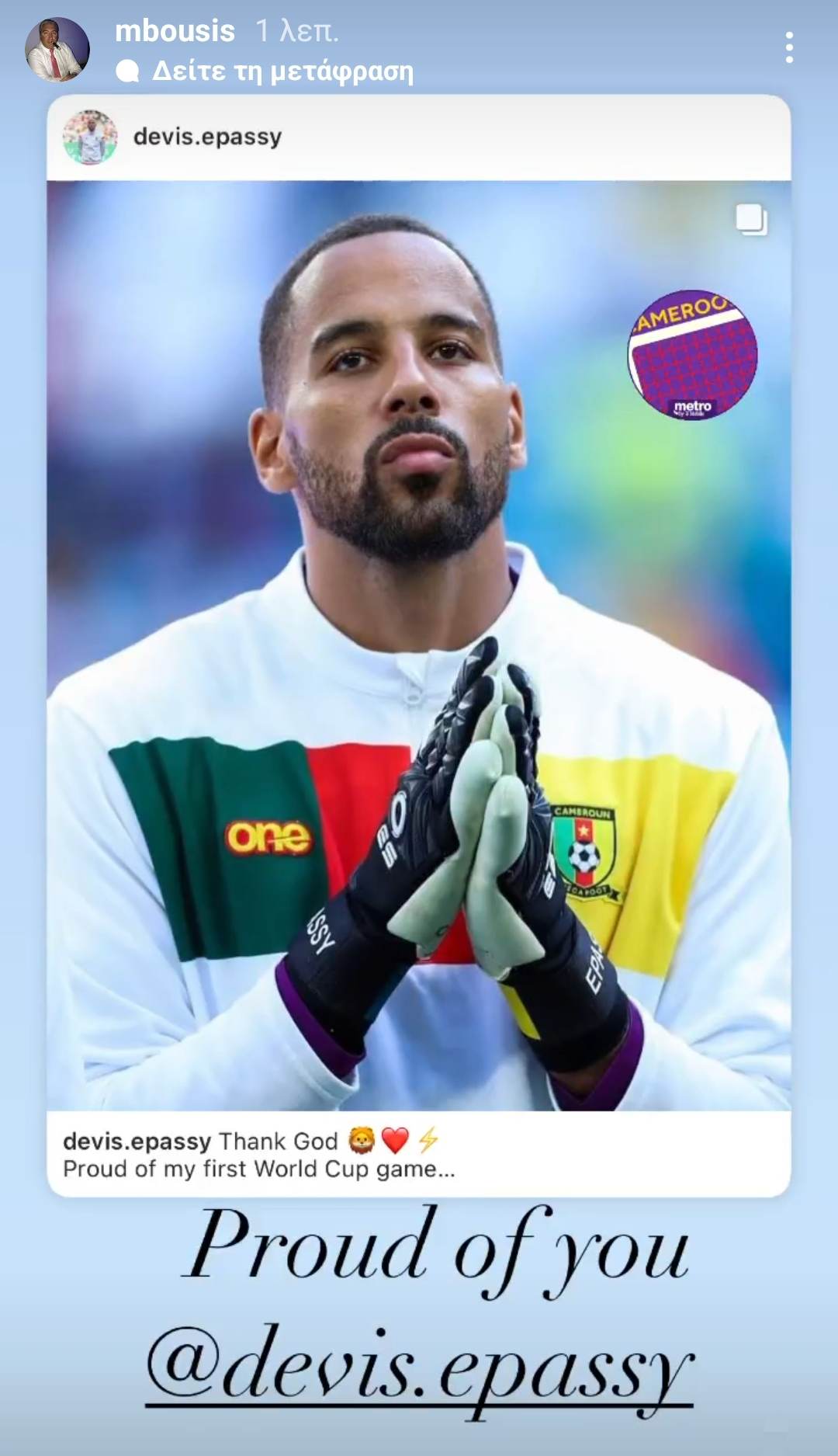 Η ισοπαλία (3-3) του Καμερούν στην αναμέτρηση με τη Σερβία συνδυάστηκε με το ντεμπούτο του Ντεβί Επασί, τον οποίο συνεχάρη ο ισχυρός άνδρας του ΟΦΗ με ανάρτησή του.