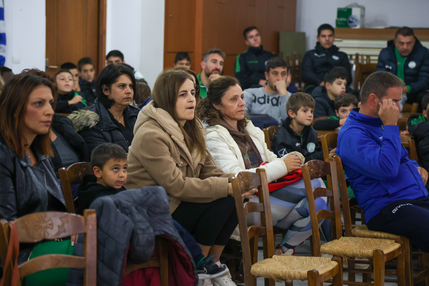 Το ενδιαφέρον επικεντρώθηκε στις ομιλίες των δύο επιστημόνων, με την κυρία Λίνα Ψούνη ν’ αναπτύσσει το θέμα «θετικές συμπεριφορές γονέων και παρακίνηση των αθλητών», ενώ η κυρία Κιλιτζιράκη μίλησε για «ποδόσφαιρο και διατροφή».