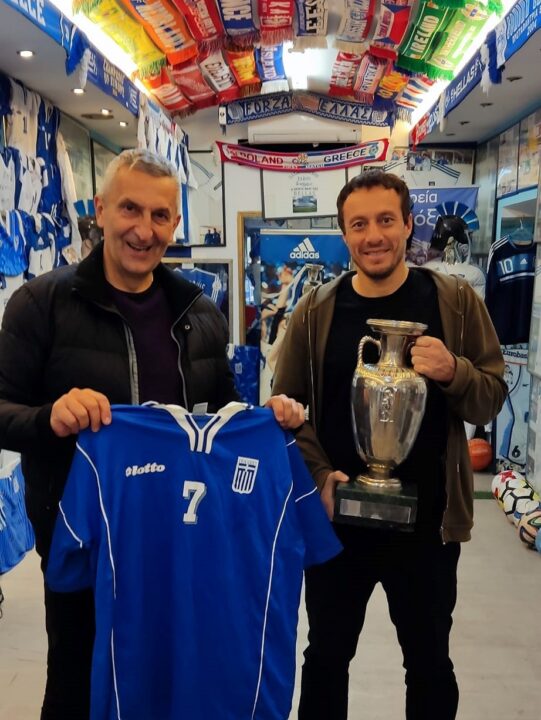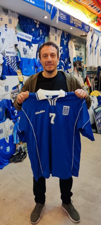 Ευχαριστούμε για την φανέλα του 2001 στον αγώνα της Εθνικής με την Γερμανία (χάσαμε με 2-4 στο ΟΑΚΑ), που στον συγκεκριμένο αγώνα ο ΓΙΩΡΓΟΣ με κεφάλια ψαράκι είχε ισοφαρίσει σε 2-2.