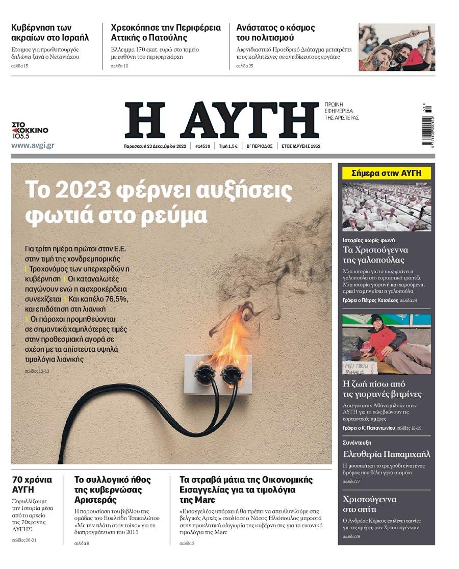 Τα πολιτικά πρωτοσέλιδα της ημέρας(23/12)