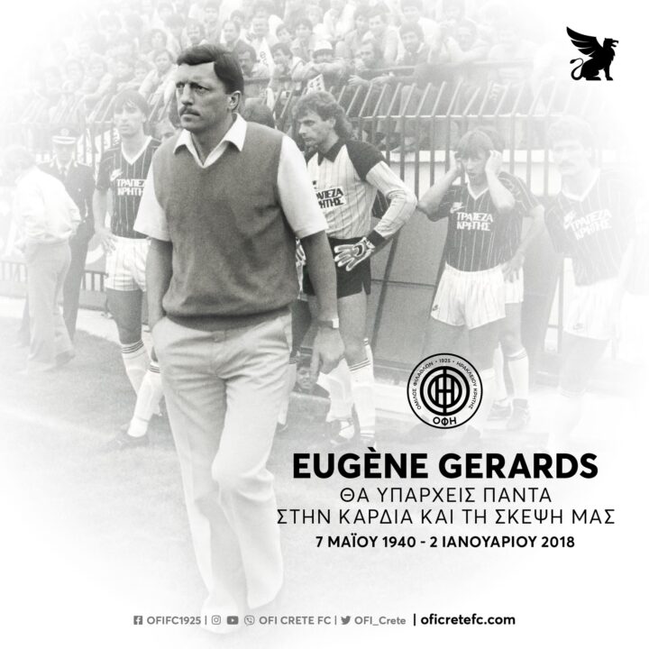 Το μεσημέρι της 2ας Ιανουαρίου του 2018 ο Ευγένιος Γκέραρντ έφευγε από την ζωή αφήνοντας πίσω ένα τεράστιο και δυσαναπλήρωτο κενό. Κανείς δεν ξέχασε και δεν πρόκειται να ξεχάσει τον άνθρωπο που άλλαξε ριζικά το παρόν και το μέλλον του ΟΦΗ, μετατρέποντας τον σε μια από τις μεγαλύτερες ομάδες της Ελλάδας.