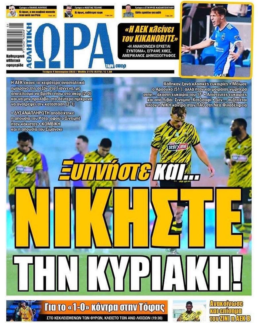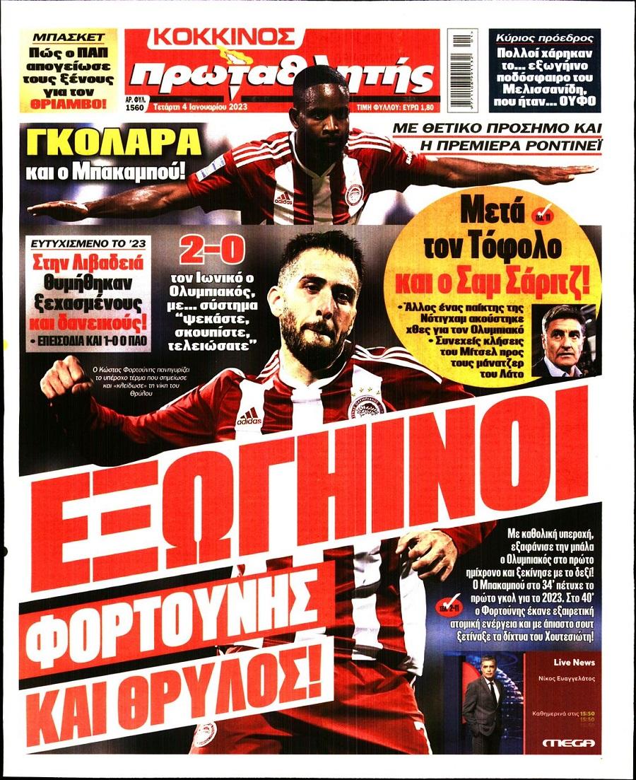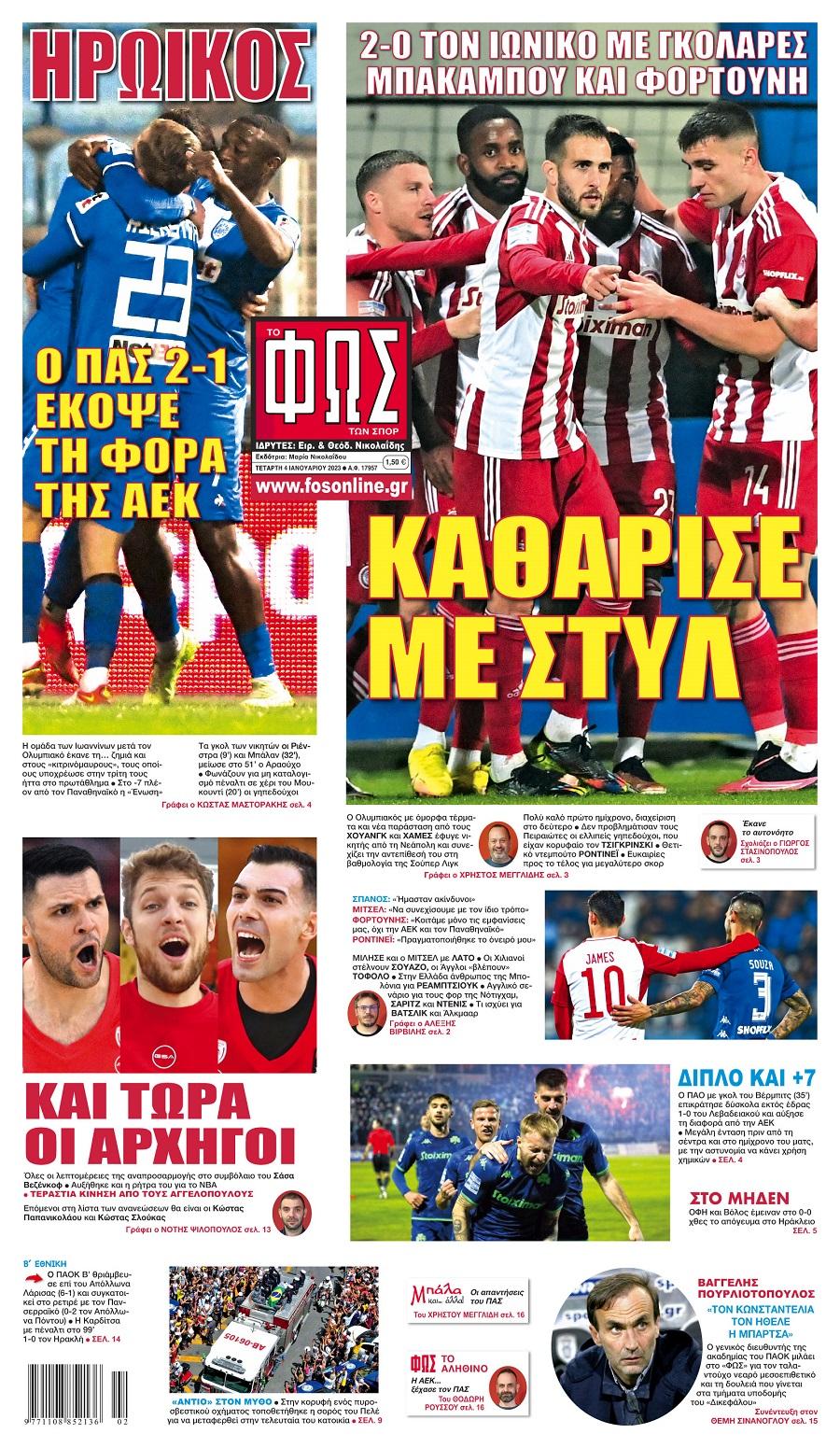 Τα αθλτικά πρωτοσέλιδα της ημέρας(04/01)