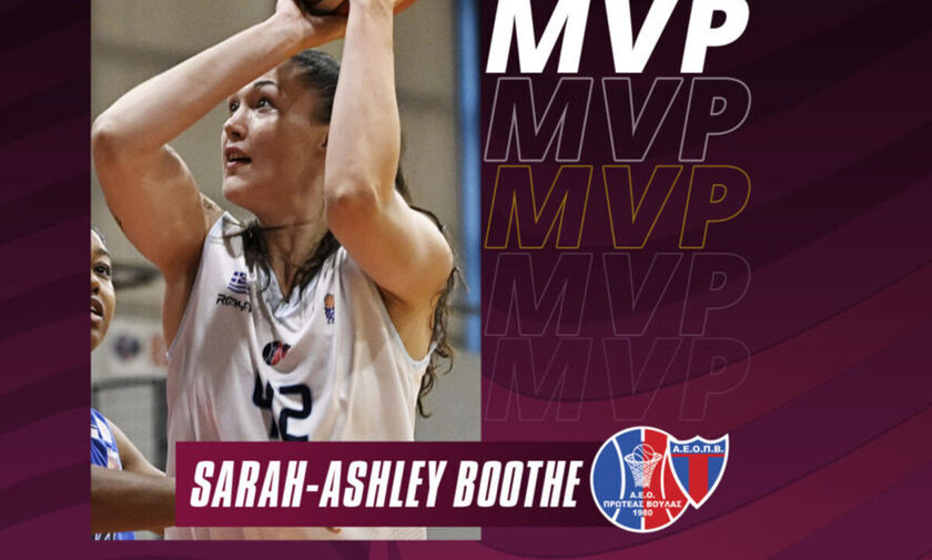 Σε MVP της 14ης αγωνιστικής της Α1 μπάσκετ Γυναικών αναδείχθηκε η Σάρα Μπουθ του Πρωτέα Βούλας.