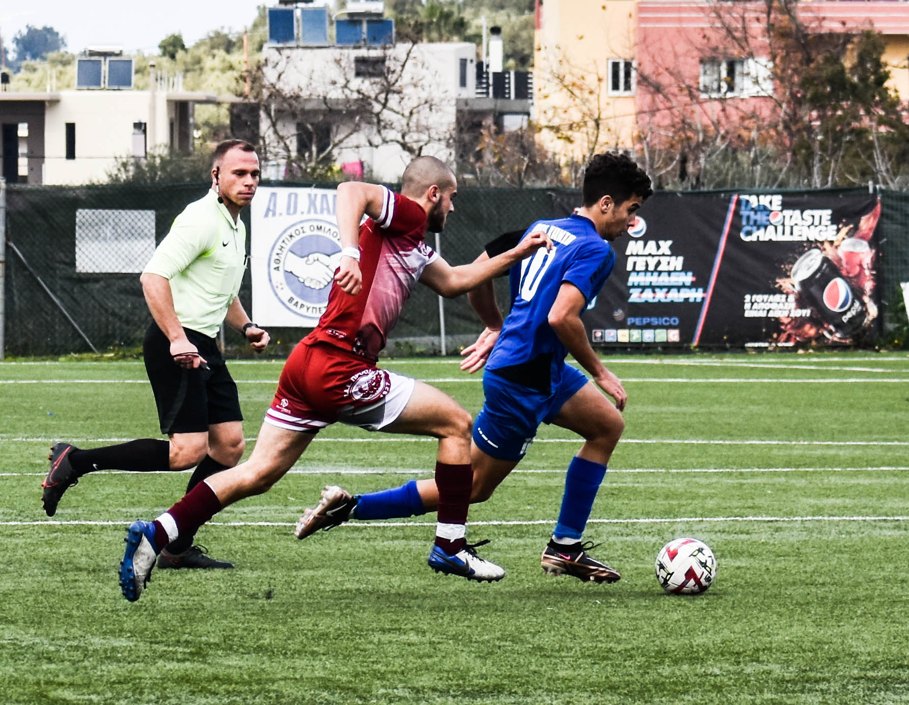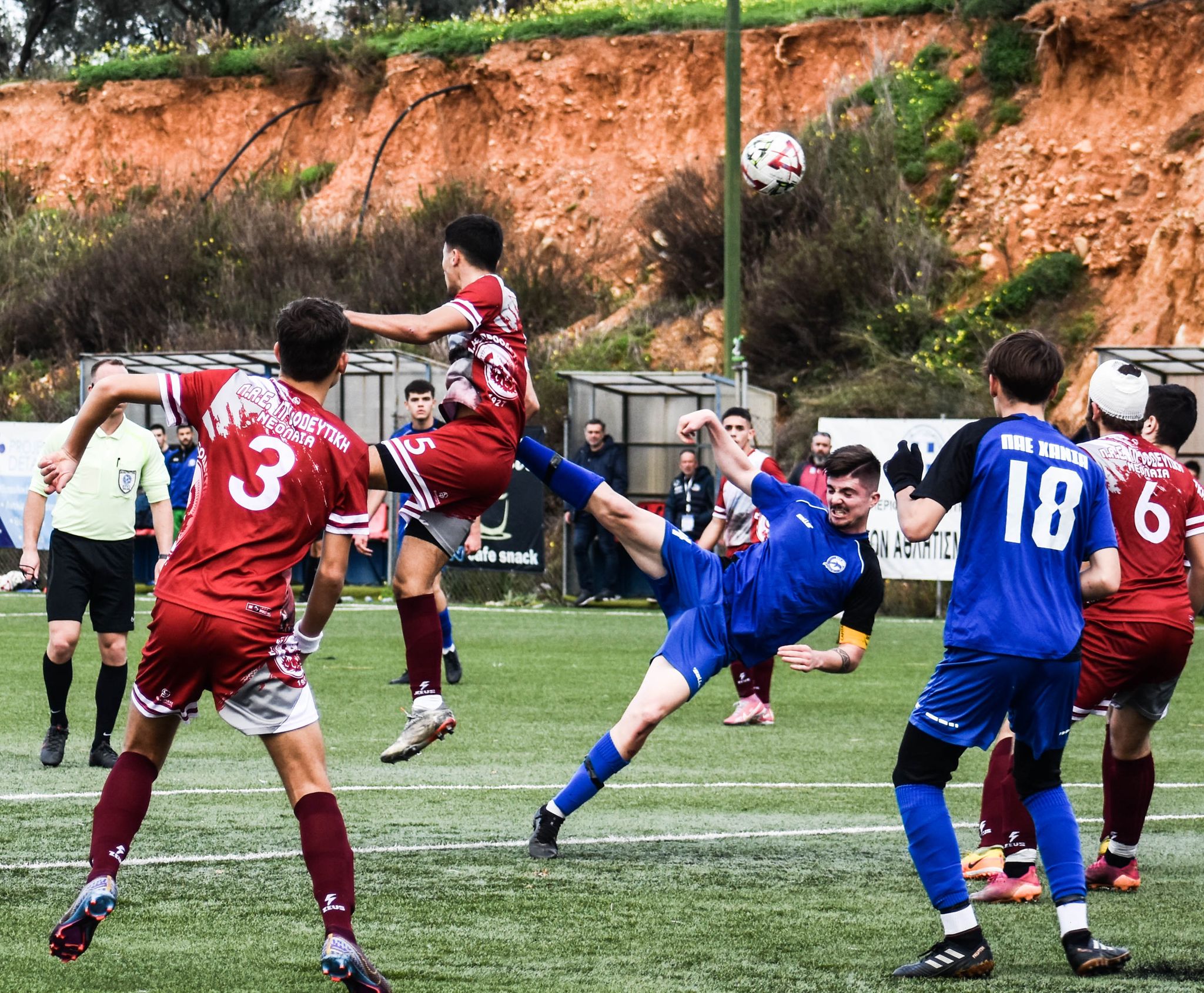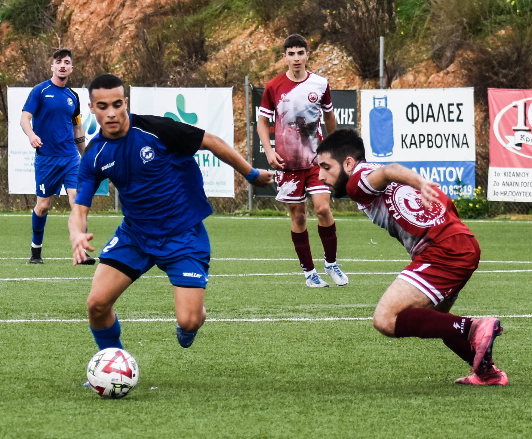 Τα Χανιά αντέδρασαν και κατάφεραν να ισοφαρίσουν στο 33ο λεπτό έπειτα από ωραία ομαδική προσπάθεια η μπάλα κατέληξε στον Χαλίλι που από κοντά έκανε το 1-1 για την Κ19 των Χανίων.