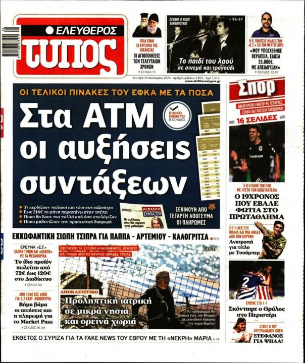 Τα πολιτικά πρωτοσέλιδα της ημέρας(23/01)
